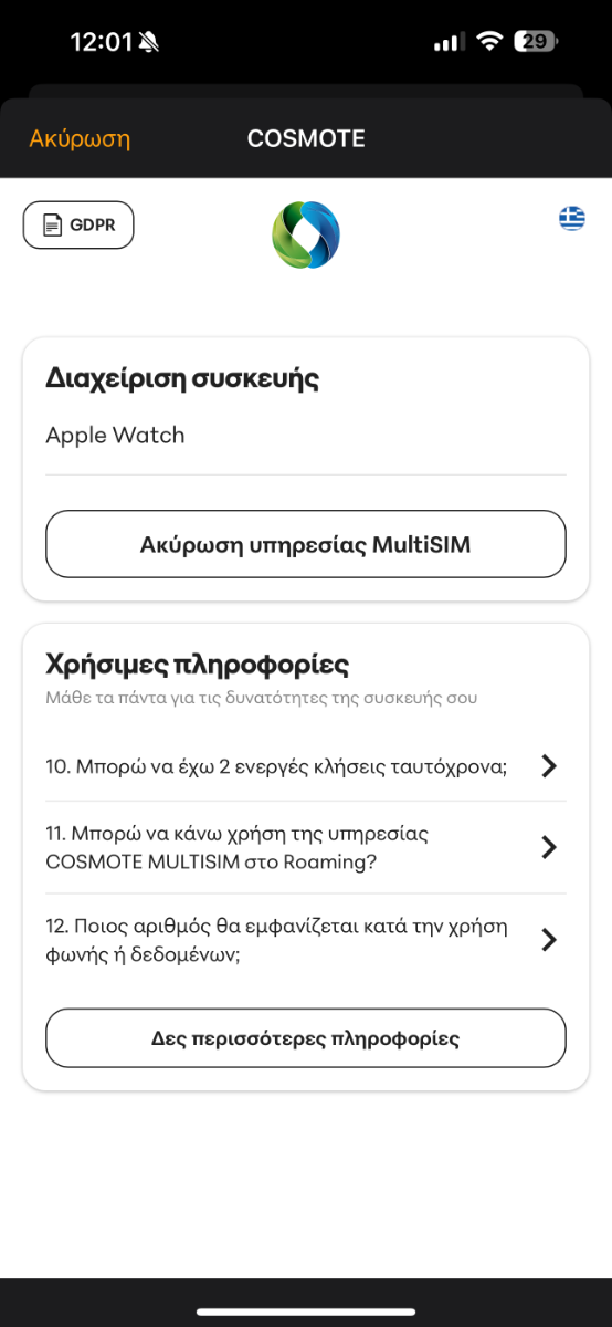 ramarg Δημοσ. 5 Απριλίου Δημοσ. 5 Απριλίου (επεξεργασμένο) 5 ώρες πριν, gkat2829 είπε Καλημερα παιδια. Θα ηθελα να ρωτησω εχει προχωρησει κανενας απο εδω μεσα σε ενεργοποιηση ULTRA πρωτης Γενιας ή 9αρι ή 8αρι? Η COSMOTE γραφει στο site οτι θα υποστηριχθουν προς το παρον τα ULTRA 2 τα 10αρια και τα SE προς το παρον. Αυτοί αναφέρουν αυτά που κυκλοφορούν τώρα στην αγορά (γιατί αυτά πουλάνε αυτά ξέρουν). Προφανώς και υποστηρίζονται όλα τα AW Cellular από Series 6 και μετά (καθώς υποστηρίζουν watchOS 11 και έλαβαν το νεότερο update). Το ερώτημα είναι αν κάποιος που έχει Series 3 4 5 Cellular (αγορασμένο εντός ΕΕ) αν κατάφερε να το ενεργοποιήσει, δεδομένου του γεγονότος ότι έχουν μείνει σε παλιές εκδόσεις watchOS και ΜΑΛΛΟΝ δεν λαμβάνουν ούτε απλές ενημερώσεις ασφαλείας. 6 ώρες πριν, axidousgr είπε Αυτο που αναφερω εγω αφορα τα cellular . Με ενεργο τον διακοπτη ασχετως αν ειναι κοντα στο τηλεφωνο η μακρια τρωει πολυ μπαταρια σε εμενα σε ultra 1 Για αυτο ρωταω Capacity μπαταρίας.? 5 ώρες πριν, djuan1988 είπε Σε όποιον έχει τύχει "συστημικό" πρόβλημα στην Cosmote ξέρει ήδη ότι είναι ένα τεράστιο χαμαιτυπείο και για να βγάλεις άκρη πρέπει να έχεις τεράστια τύχη ή μέσο μέσα στην εταιρεία. Ελπίζω επειδή είναι σημαντικό το ζήτημα και αφορά πολλούς να το λύσουν μόνοι τους. Στα του ρολογιού τώρα, AW Ultra 2. Φόρτιση εχθές στις 13:00. Μια ώρα καταγραφή γυμναστική, μισή ώρα τρέξιμο έξω, 15 λεπτά κλήση, σύνολο 2 ώρες σε 4G και όλα ανοιχτά την υπόλοιπη ημέρα μαζί με το κινητό. Η μπαταρία τώρα σχεδόν 24 ώρες είναι στο 49%, ενώ χωρίς 4G συνήθως ήταν στο 65-70%. Από τις 3 γεμάτες μέρες δηλαδή έπεσα στις <2. Και εγώ σε παρόμοια χρήση μέχρι τώρα αντιλήφθηκα ακριβώς αυτό. Πτώση 12-15% περισσότερο από,τι συνήθως.. 4 ώρες πριν, ppmarkos είπε Επιμένω ότι αν βγάλεις την κάρτα sim από το κινητό, το ανοίξεις χωρίς κάρτα και το ξανά κλείσεις για να το ανοίξεις με κάρτα η παραγγελία σβήνεται από το σύστημα. Τουλάχιστον έτσι έγινε σε εμένα. Πάτησα πολλές φορές πριν αφαίρεση προγράμματος εκεί που έλεγε COSMOTE αναμονή. Μου πέταγε μήνυμα ότι δεν μπορεί να αφαιρεθεί το πρόγραμμα. Μετά έκανα αυτό που αναφέρω. Απλά σε εμένα δεν χρειάστηκε να βγάλω κάρτα. Έχω διακόπτη λόγω 2 σιμ. Όταν την ξανά τοποθετήσεις και το ανοίξεις με κάρτα καταλαβαίνεις ότι έχει χάσει ρυθμισεις επειδή ζητάει ενεργοποίηση iMessage πάλι. Κάτι παίζει όντως με την ενεργοποίηση του Facetime & iMessage στο σύστημα τους, γιατί από τότε που ενεργοποίησα την MultiSIM συνέχεια μου πετάει PopUP ενημέρωσης για αυτά & για το iCloud (ότι αν τα ενεργοποιήσω μπορεί να έχω χρεώσεις). Επεξ/σία 5 Απριλίου από ramarg