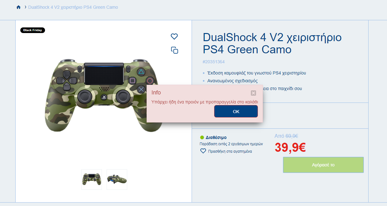 tikei Δημοσ. 27 Νοεμβρίου 2019 Δημοσ. 27 Νοεμβρίου 2019 Μόλις τώρα, Tij1012 είπε Σε έμενα έλεγε αυτό όταν έβαζα και χειριστήριο ''Info Υπάρχει ήδη ένα προϊόν με προπαραγγελία στο καλάθι'' και δεν μπορούσα να ολοκληρώσω την παραγγελία μου μηπως ήταν το χειριστήριο το ροζε χρυσαφι? εγω εβαλα το camo green