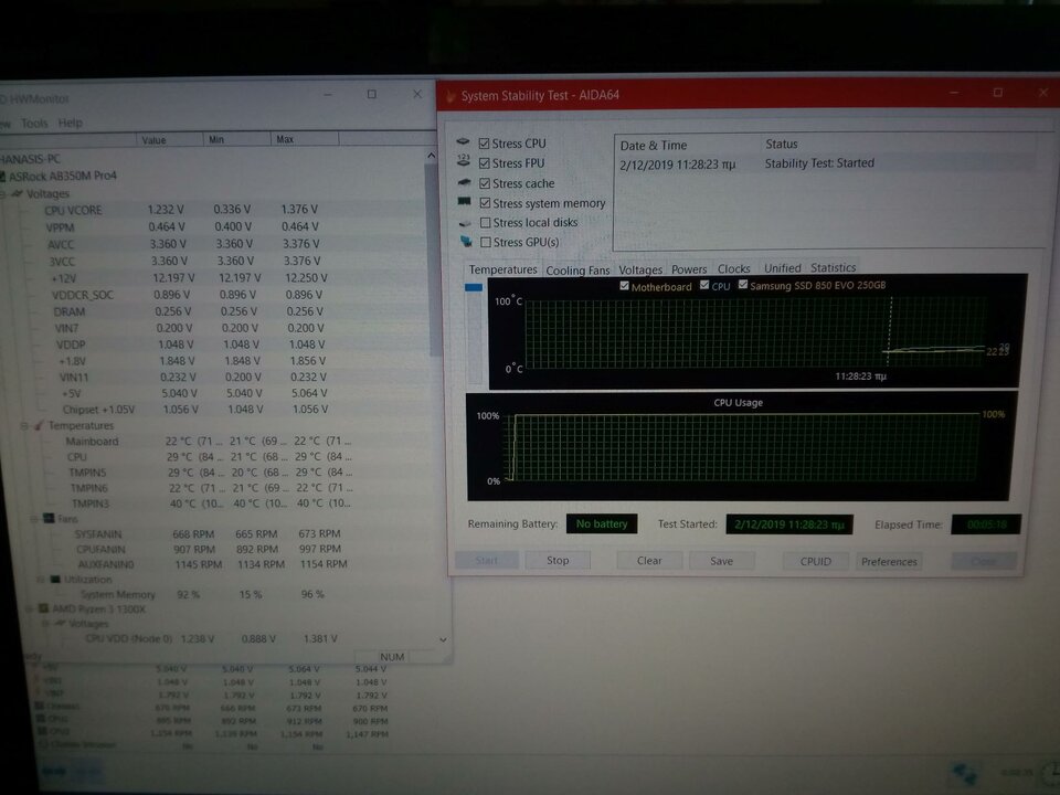 charas Δημοσ. 2 Δεκεμβρίου 2019 Δημοσ. 2 Δεκεμβρίου 2019 Καλημερα στην κοινοτητα. Τα φωτα σας παιδια χρειαζομαι γιατι μαλλον θα τρελαθω η εγω δεν κανω κατι καλα. Το αντικειμενο προς εξερευνηση, μητρικη asrock ab350m pro4 & cpu ryzen 3 1300x. Κουλερ Gammaxx 400. Υποψιν οτι η διαφορα θερμοκρασιας με το στοκ κουλερ ειναι χαώδης. Το προβλημα, αν ειναι προβλημα? Υποψιν για του λογου το αληθες μπορω να παρεχω live viber η βιντεο, εκτος απο τις φωτο που ανεβασα, για επιβεβαιωση. Λοιπον, τρεχω stability test aida64 engineer, με τους σενσορες θερμοκρασιας ενεργοποιηενους σε aida, ανοικτο και το HWM αλλα και το HWinfo64, ταυτοχρονα. Η δευτερη και τριτη φωτο κατα σειρα ειναι πριν αρχισει το στρεσ τεστ με aida. Η πρωτη και τεταρτη ειναι με το στρες τεστ σε λειτουργια. Μετα απο 20 λεπτα στρες τεστ η μεγιστη θερμοκρασια cpu ηταν 31 βαθμους και της μητρικης 23 βαθμους. Ακουμπωντας τις ψυκτρες στα vrm της μητρικης,ειχαν την θερμοκρασια του κρυου μεταλου,αλουμινιο γαρ, + 3-5 βαθμους παραπανω. Οποτε τι στο καλο ειναι οι θερμοκρασιες που βλεπω στο HWinfo64 στο AUXILIARY και στο AUXTIN1???? Τωρα, η εγω κανω κατι λαθος, η το τσιπ σε μητρικη και cpu ειναι golden lottery, εδω γελαμε χα χα χα, η τα προγραμματα ολα ειναι αναξιοπιστα. Αλλα πως θα ξερω εγω ποιο ειναι το σωστο, με δεδομενο οτι κυκλοφορουν τοσες αρνητικες περιγραφες για την συγκεκριμενη μητρικη, την οποια ειχα βαλει προς πωληση νομιζοντας οτι ειναι χαλασμενη, αλλα ενα παιδι απο δω μεσα, να ναι καλα και τον ευχαριστω, μου ειπε επειδη τις δουλευει πολυ τις συγκεκριμενες, να κοιταξω κατι αλλο στην αλυσιδα, διοτι δεν πιστευε οτι ηταν η μητρικη, και αποδειχτηκε τελικα οτι ηταν ο kingston ssd 120gb το προβλημα. Περιμενω τα φωτα σας. Ευχαριστω εκ καρδίας για ολα τα σχολια προκαταβολικα.