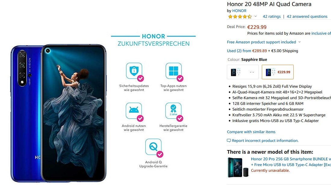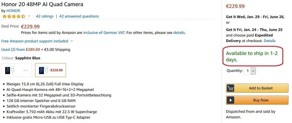 kkatzos Δημοσ. 20 Ιανουαρίου 2020 Δημοσ. 20 Ιανουαρίου 2020 (επεξεργασμένο) Το Honor 20 6/128GB στα 247€ τελική τιμή και ετοιμοπαράδοτο. https://www.amazon.de/gp/product/B07T7Q4VSH/ Kirin 980, 6GB RAM, 128GB ROM Ελλάδα από 327€ + μεταφορικά, ιστορικό 310€ + μεταφορικά.: https://www.bestprice.gr/item/2155722271/honor-20-6gb-128gb-dual.html Βάζω και το screenshot γιατί σε λίγο δε θα υπάρχει. Ξεπουλάνε σε χρόνο ρεκόρ. Ξεπούλησαν ήδη. Είχαν 15 κομμάτια όταν το πρωτοείδα και μέσα σε 15 λεπτά τελείωσαν. Ξανά διαθέσιμο Επεξ/σία 20 Ιανουαρίου 2020 από kkatzos
