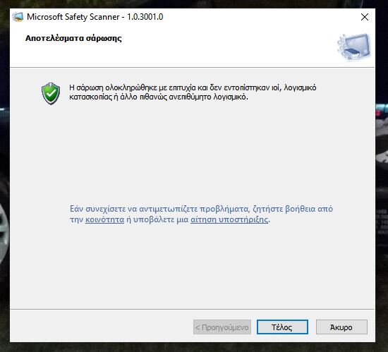 kosmous Δημοσ. 3 Φεβρουαρίου 2020 Μέλος Δημοσ. 3 Φεβρουαρίου 2020 Κατέβασα το Microsoft Safety Scanner και τρέχοντάς το δε βρήκε τίποτε .