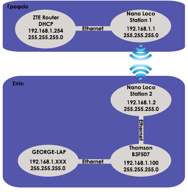 its4you Δημοσ. 4 Μαρτίου 2020 Μέλος Δημοσ. 4 Μαρτίου 2020 Σε ευχαριστώ geofak για την άμεση απόκριση! Δεν νομίζω ότι έχοντας διαφορετική IP στον router από αυτή με την οποία έρχεται ρυθμισμένος, μπορεί επηρεάσει τις λειτουργίες του. Κανένας τεχνικός από την Forthnet δεν μου είπε κάτι για το συγκεκριμένο. Η αλήθεια είναι ότι στο γραφείο όπου και βρίσκεται ο router δεν είχα τον χρόνο να κάνω τα αντίστοιχα test. Να ενεργοποιήσω τους κανόνες για το Parental Control και να δοκιμάσω να συνδεθώ είτε ασύρματα με το κινητό μου είτε ενσύρματα με το Laptop μου. Επισυνάπτω σχηματικά την τοπολογία του δικτύου μου όπου θα δεις ότι το Laptop μου δεν συνδέεται ασύρματα και απ' ευθείας με το router. Παρ' ολα αυτά δεν νομίζω ότι θα έπρεπε να επηρεάζει το πως λειτουργεί μια που ο router "βλέπει" τις MAC Address και εκεί "περνάει" τους κανόνες. Μήπως θα ήταν καλύτερο κάποιος να μου προτείνει ένα άλλο οικονομικό router με δυνατότητα χρονικού περιορισμού πρόσβασης στο internet που θα μπορούσα να παρεμβάλλω αμέσως μετά τον ZTE και πριν το πρώτο Nano Loco Station (192.168.1.1); Ευχαριστώ Γιώργος