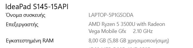 zncisnikos Δημοσ. 21 Μαρτίου 2020 Δημοσ. 21 Μαρτίου 2020 Καλησπέρα στην παρέα. Έχω το Laptop που φαίνεται στην επισύναψη με 8Gb μνήμη αλλά στις πληροφορίες συστήματος γράφει 5,88Gb χρησιμοποιήσιμη. Είναι σωστό η κάτι δεν πάει καλά. Ευχαριστώ.
