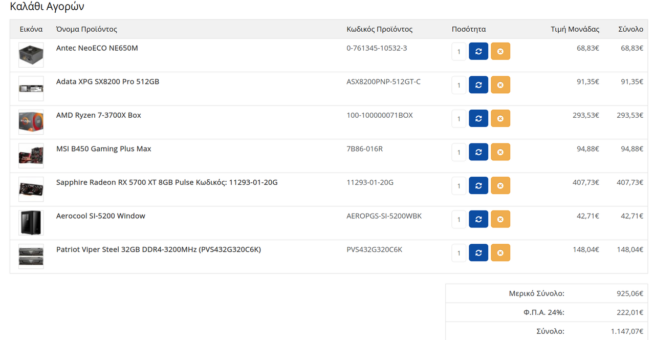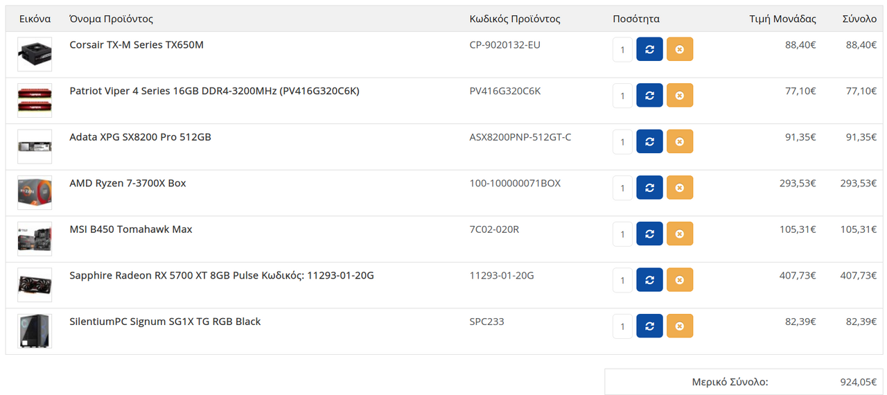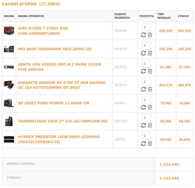 adtakhs Δημοσ. 25 Μαρτίου 2020 Δημοσ. 25 Μαρτίου 2020 (επεξεργασμένο) 9 ώρες πριν, Tomkas είπε Ψάχνομαι να φτιάξω μια κεντρική μονάδα όπου θα αποσκοπεί και σε εργασία αλλά παράλληλα και gaming... θέλω της προτάσεις σας αλλά και την αιτιολογία. TABANI 1000-1100ε Το combo που έχω κάνει ύστερα από δικιά μου έρευνα και κάποιες συμβουλές φίλων και χωρίς να έχω πολλές γνώσεις είναι: asus prime x470 ryzen 3600 amd rtx gigabyte 2070 g skill flare x 3200 samsung evo plus 970 500g m.2 sharkoon pure steel black Και με 32GB RAM με λιγο κόψιμο στα υπόλοιπα. Το τελευταίο το θεωρώ το καλύτερο σε αυτά τα χρήματα. Για κουτί μπορείς να δεις όποιο άλλο σου αρέσει ή να κάνεις μείξη των παραπάνω συνθέσεων από τα δυο καταστήματα για να ρίξεις το κόστος ή να κάνεις διαλογή. Πχ. Αν έπαιρνα το τρίτο σετ, θα κοιτούσα να βάλω το τροφοδοτικό του πρώτου ή και την κάρτα του. Επεξ/σία 25 Μαρτίου 2020 από adtakhs 1