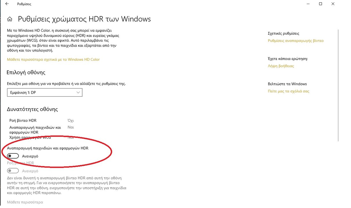 ekiki Δημοσ. 28 Μαρτίου 2020 Δημοσ. 28 Μαρτίου 2020 καλησπέρα σας , Αντιμετωπίζω το εξής πρόβλημα... Αγόρασα μια οθόνη για τον υπολογιστή που υποστηρίζει HDR, την εγκατέστησα .. άνοιξα youtube για δοκιμή βρήκα βίντεο HDR αλλά δεν το παίζει σαν HDR. Έκανα την ρύθμιση μέσα από τα Windows 10 - άλλα μόλις ενεργοποιώ το κουμπί μου αλλάζει τα χρώματα και όλα δείχνουν ξεθωριασμένα ! και τότε το youtube αναγνωρίζει το HDR !! έχει κανείς καμία ιδέα τι μπορεί να κάνω λάθος ?? η σύνδεση της οθόνης είναι με καλώδιο display port