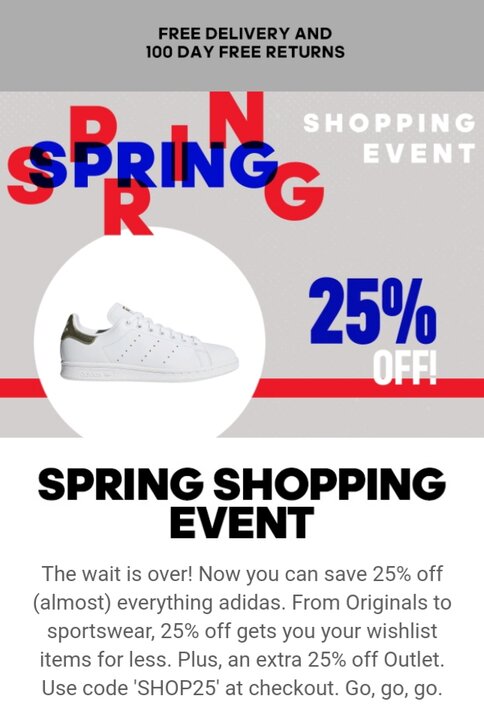 bromiaris Δημοσ. 7 Απριλίου 2020 Δημοσ. 7 Απριλίου 2020 (επεξεργασμένο) Ανοιξιάτικες εκπτώσεις Adidas και extra έκπτωση -25% χρησιμοποιώντας τον κωδικό SHOP25 Η προσφορά ξεκινά από σήμερα 07/04/2020 00.01 μέχρι 13/04/2020 23.59. Καλές αγορές. https://www.adidas.gr/ανδρικά-spring_shopping_event https://www.adidas.gr/γυναικεία-spring_shopping_event Επεξ/σία 7 Απριλίου 2020 από bromiaris 3 5
