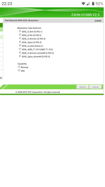 DonaldSand Δημοσ. 12 Απριλίου 2020 Μέλος Δημοσ. 12 Απριλίου 2020 (επεξεργασμένο) 2 ώρες πριν, aGka8l είπε αν δεις για καποιο λογο συγχρονίζεις σε adsl και οχι σε adsl2+ , δες λιγο τις ρυθμισεις στο ρουτερ και βαλτο σε adsl2+ , αν δυσκολευτείς πάρε στην voda na to δουν Το προσπάθησα και οδηγηθηκα εδώ .Δεν μπορω να επιλεξω ομως. Επεξ/σία 12 Απριλίου 2020 από DonaldSand