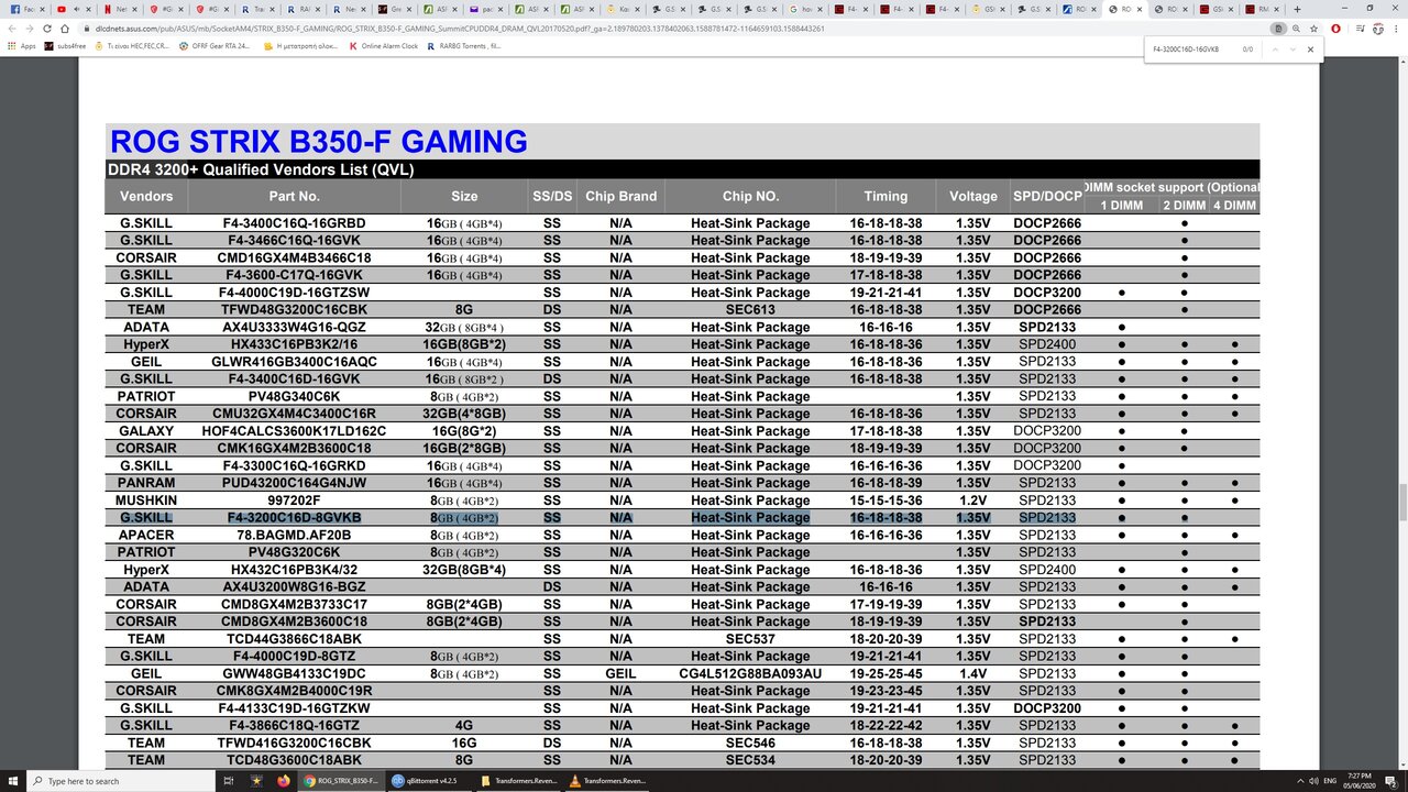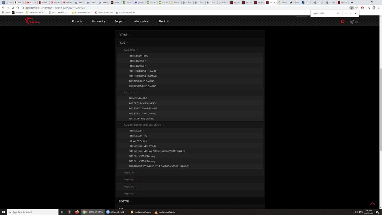 IN FLAMES Δημοσ. 6 Μαΐου 2020 Δημοσ. 6 Μαΐου 2020 Bρηκα αυτο στο QVL της μητρικης σου η διαφορα απο αυτες που πηρες με αυτο που γραφει εδω ειναι το total packaze size δλδ εσενα λεει 16 ενω στην μητρικη 8 το οποιο δν ειναι προβλημα ....ψαχνω μηπως βρω τπτ να βοηθησω καπως ... PRIME B450-PLUS PRIME B450M-A PRIME B450M-K ROG STRIX B450-F GAMING ROG STRIX B450-I GAMING TUF B450-PLUS GAMING TUF B450M-PLUS GAMING αυτες βρηκα οτι υποστηριζονται απο το σιτε της Gskill
