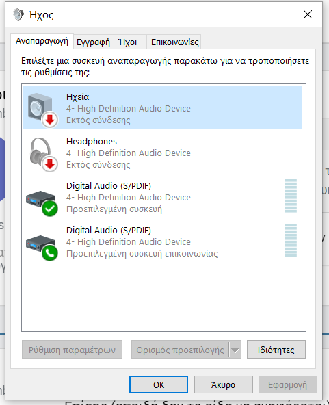 snbblp Δημοσ. 18 Απριλίου 2020 Δημοσ. 18 Απριλίου 2020 Με αριστερό μαρκάρεις "ηχεία" και μετά πατάς κάτω εκεί που γράφει "ορισμός προεπιλογής". Πρέπει επίσης να απενεργοποιήσεις την αυτόματη ανίχνευση σύνδεσης, όμως αυτό γίνεται από αλλού.