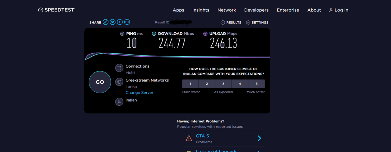 HateMe Δημοσ. 21 Απριλίου 2020 Δημοσ. 21 Απριλίου 2020 22 λεπτά πριν, MarlonBr είπε Παίδες συνδέθηκα ήδη σήμερα αφού έκανα την εγκατάσταση, με 37 ευρώ έχω τηλέφωνο ίντερνετ και πιάνω πάνω από 200 mbps, το σκεφτόμουν πολύ καιρό να αλλάξω και δεν είχα καμία αμφιβολία ότι θα ήμουν καλύτερα εδώ. Τα 200 της vodafone ftth είναι με 62,50 απ' ότι βλέπω οπότε δεν υπάρχει συζήτηση γι' αυτό. Εκεί που έπιανα 8 με 9 download και 0.7 up τώρα πιάνω αυτό. Έχεις υψηλό ping (δεν τρολλάρω) Κανονικά πρέπει να έχεις 1-2 μαξ. Οσοι φίλοι μου έχουν inalan, 1-2 ms έχουν ping. Καλωδιακά το έκανες το speedtest η με wifi ;