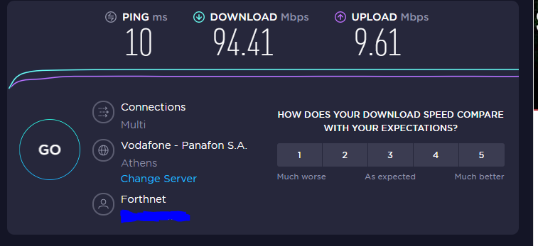 StormAngel7 Δημοσ. 24 Απριλίου 2020 Δημοσ. 24 Απριλίου 2020 21 ώρες πριν, Andi113xx είπε Κ εμένα μου έστειλαν το ZTE H267n έχω συνδέσει CAT6(8pin) στο LAN4-1GBps ίδια ταχύτητα στο speedtest καμία διαφορά εγω κλειδωνω στο μοδεμ λιγο παραπανω απο σενα,οποτε και απολεια που εχω,με το cat5e που μου ειχαν στην συσκευασια στο ookla (το κατεβασα σαν εφαρμογη απο microsoft store) επιανα 95-97mbps,επειδη το καλωδιο δεν μου εδινει την δυνατοτητα να ξεπερασω τα 100mbps (υπαρχει και απολεια κτλ)