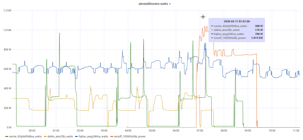 liakjim Δημοσ. 14 Μαΐου 2020 Δημοσ. 14 Μαΐου 2020 3 ώρες πριν, neosstoforum είπε Αντί για αυτήν πιστεύω ότι αξίζει περισσότερο με 2 ευρώ παραπάνω να αγοράσεις την πρίζα Panasonic και το Hub, γιατί θα μπορείς να προσθέσεις και άλλα εξαρτήματα μελλοντικά. H tplink hs110 , είναι καταπληκτική πρίζα μιας και συνδέεται με home assistant ή / και με το κάτωθι αρχείο και έχεις διαγράμματα κατανάλωσης , χαρακτηριστικό που δεν συναντάς αλλού : https://github.com/jamesbarnett91/tplink-energy-monitor Και κάποια δικά μου screenshots από το grafana με HA και το πριζάκι αυτό : 5 1