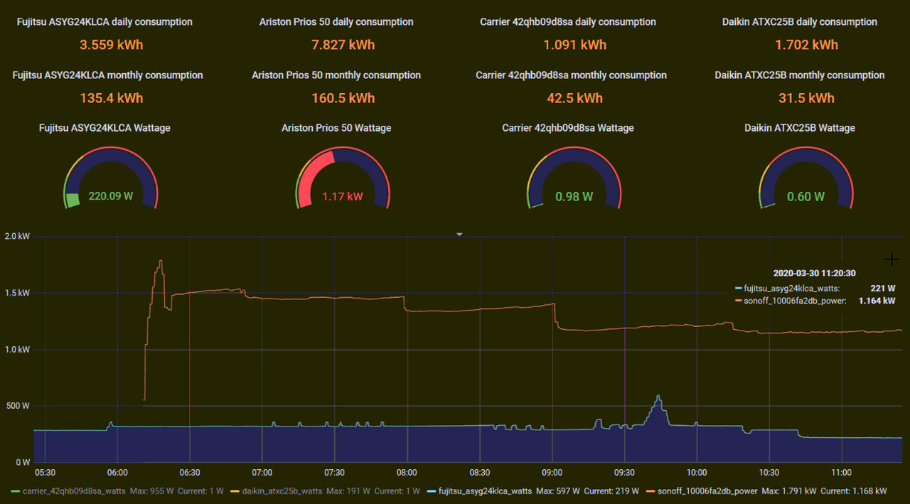 lemonithas Δημοσ. 19 Μαΐου 2020 Δημοσ. 19 Μαΐου 2020 Στις 14/5/2020 στις 7:23 ΠΜ, liakjim είπε H tplink hs110 , είναι καταπληκτική πρίζα μιας και συνδέεται με home assistant ή / και με το κάτωθι αρχείο και έχεις διαγράμματα κατανάλωσης , χαρακτηριστικό που δεν συναντάς αλλού : https://github.com/jamesbarnett91/tplink-energy-monitor Και κάποια δικά μου screenshots από το grafana με HA και το πριζάκι αυτό : Έχεις pm σχετικά με αυτό