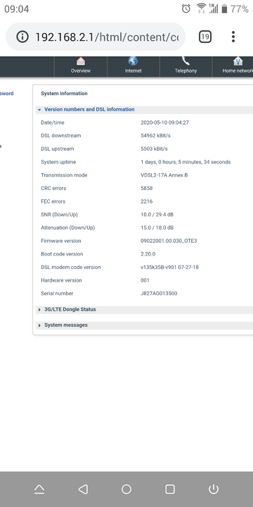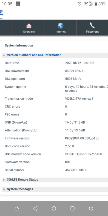 Finn Δημοσ. 14 Μαΐου 2020 Δημοσ. 14 Μαΐου 2020 (επεξεργασμένο) Καλησπέρα, κλείνω σχεδόν χρόνο με μια σύνδεση VDSL50 με την οποία όλα πήγαιναν περίφημα το πρώτο 6μηνο. Το setup μου είναι το παρακάτω: Speedport plus - > Ubiquiti ER-X -> Various unifi access points. Συγχρονισμός 55/5 και attenuation down/up 14/17 dB Τον Οκτώβρη που μας πέρασε ο γείτονας έκανε παράπονα ότι έχει χάλια ίντερνετ και απ τη μια μέρα στην άλλη άρχισα να έχω κι εγώ το ίδιο θέμα (νομίζω το δικό του λύθηκε). Κάλεσα στο 13888, ΄δεν ήρθε ποτέ απο εδώ τεχνικός αλλά όντως το πρόβλημα λύθηκε μέχρι να ξανα εμφανιστεί μέσα Απρίλη. Ήρθε τεχνικός, μέτρησε στο box, λέει δε βλέπω κάτι εδώ, μαξ έχεις τα 70, για πάμε στο χώρο του ρούτερ. Μέτρησε κι εκεί και έριξε το φταίξιμο στο router της ubiquiti. Απο τότε οι αποσυνδέσεις είναι καθημερινό φαινόμενο, από 6 εώς 20 τη μέρα και 9 στις 10 φορές ο συγχρονισμός είναι στα 49-55. Καμιά συμβουλή; Να κοιτάξω κάτι στο σεταπ μου; ΄Αλλαξα και πριζάκι σήμερα αλλά δεν είδα διαφορά. Επεξ/σία 14 Μαΐου 2020 από Finn