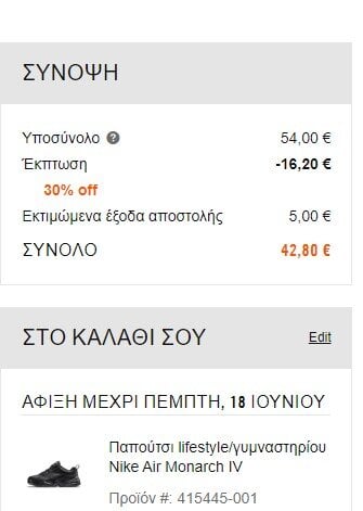 batatoudis Δημοσ. 25 Μαΐου 2020 Δημοσ. 25 Μαΐου 2020 Δούλεψε ο κωδικός σε αγορά πριν λίγο. Δεν ξέρω αν έχει σημασία (σε προηγούμενη αντίστοιχη προσφορά είχε), πάντως το πέρασα σε προϊόν που εμφανιζόταν να έχει ήδη κάποια πρώτη έκπτωση (αρχική τιμή διεγραμμένη, νέα τιμή στο site, έξτρα έκπτωση 30% επί της νέας τιμής με τον κωδικό). Αφορά τα γυναικεία epic react flyknit 2 σε τελική τιμή περίπου 60.53€ (τρέχουσα φθηνότερη στο skroutz 75€, ενώ στο νούμερο που έψαχνα φθηνότερο του skroutz 90€). Ευχαριστώ τον TS!