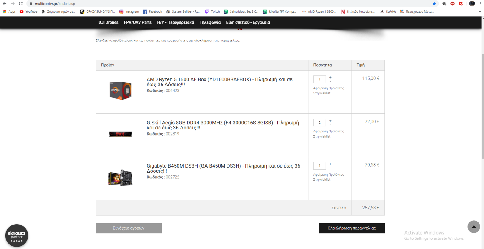 alexpro19 Δημοσ. 8 Ιουνίου 2020 Δημοσ. 8 Ιουνίου 2020 1)Ryzen 5 1600 AF> Ryzen 5 2600 2)μπορεις να αγνοησεις την μητρικη που δειχνω μιας και σε λιγο καιρο βγαινουν καινουργιες B550 (αρα θα πεσουν οι B450) 3)16gb 3000MHz 4)257,63(+7.50 μεταφορικα και αντικαταβολη) αρα εγω με 265.13 προτεινω 16 ram