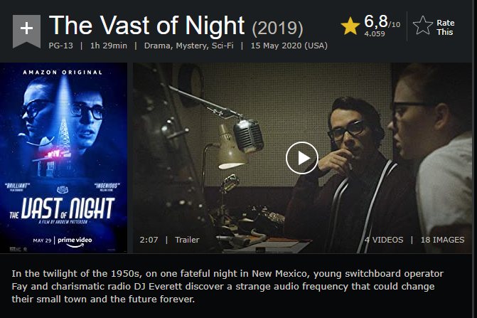 Nomedor Δημοσ. 3 Ιουνίου 2020 Δημοσ. 3 Ιουνίου 2020 Amazon Studios | Release Date (Streaming): May 29, 2020 | PG-13 In the twilight of the 1950s, on one fateful night in New Mexico, a young, winsome switchboard operator Fay (Sierra McCormick) and charismatic radio DJ Everett (Jake Horowitz) discover a strange audio frequency that could change their small town and the future forever. Dropped phone calls, AM radio signals, secret reels of tape forgotten in a library, switchboards, crossed patchlines and an anonymous phone call lead Fay and Everett on a scavenger hunt toward the unknown. Καιρό είχα να ευχαριστηθώ έτσι ταινία, αποδεικνύει ότι δεν χρειάζεται πάντα μεγάλο μπάτζετ μια φτιαχτεί μια καλή ταινία.