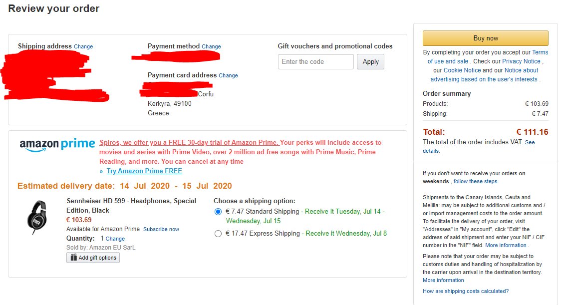 lionheart75 Δημοσ. 2 Ιουλίου 2020 Δημοσ. 2 Ιουλίου 2020 Η διαφορά ΦΠΑ έχει ήδη υπολογιστεί, από 101,18€ γίνεται στο τελευταίο στάδιο 103,69€ όπως βλέπετε. Στο Amazon πάντα προστίθεται το επιπλέον ποσό της διαφοράς ΦΠΑ Eλλάδος. 1 1