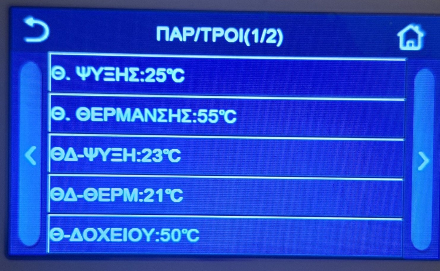 makisssss Δημοσ. 29 Σεπτεμβρίου Δημοσ. 29 Σεπτεμβρίου 14 ώρες πριν, pavloa είπε Φέτος περάσαμε την αντλία Toyotomi Hydria+. Πριν μερικές μέρες ήρθαν και μου ρύθμισαν την αντλία για να είναι έτοιμη για τον χειμώνα. Η αντλία θα δουλεύει μόνο για θέρμανση και για ζεστό νερό χρήσης. Τα σώματα είναι καινούργια. Το σπίτι είναι 73τμ. Συο κέντρο την Βέροιας, στον τρίτο όροφο.. απο πάνω, κάτω, δίπλα ειναι κλειστό από άλλα σπίτια.. οπότε μόνο δύο πλευρές μένουν ακάλυπτες... έχουμε κάνει μόνωση 7αρα. Οι ρυθμίσεις είναι οι παρακάτω. Την αντιστάθμιση δεν ξέρω γιατί την έχουν απενεργοποιημένη, σήμερα το παρατήρησα. Πρέπει να αλλάξω κάτι ή το αφήνω έτσι¨? Σε αυτή την αντλία δεν μπορείς να ορίσεις την επιθυμητή θερμοκρασία του χώρου στην αντιστάθμιση, αντιθέτως ορίζεις ένα εύρος θερμοκρασιών (σε σένα πχ την έχουν σετάρει από 18 έως 24c) και αποφασίζει μόνη της (ανάλογα με την εξωτερική, εσωτερική θερμοκρασία, ζνχ κ.α ) για το πως θα δουλέψει και που θα φτάσει την θερμοκρασία του χώρου. Προσωπικά όσο και αν προσπάθησα δεν κατάφερα να ρυθμίσω σωστά την αντιστάθμιση, εννοείται το ίδιο και ο εγκαταστάτης. Σημείωση : ψάξε στο youtube τα κανάλια των χρηστών dexian chen και vincent tan, αναλύουν διεξοδικά όλες τις λειτουργείες της αντλίας versati (έχουν το ίδιο χειριστήριο-λειτουργείες με την δικιά σου, είναι φασόν ).
