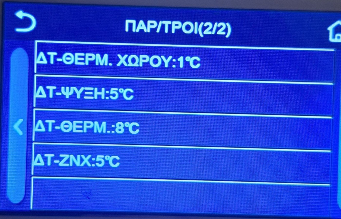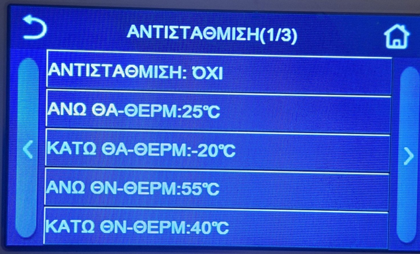 pavloa Δημοσ. Δευτέρα στις 02:22 μμ Δημοσ. Δευτέρα στις 02:22 μμ (επεξεργασμένο) 2 ώρες πριν, mechpanos είπε Βάλε 20-23 εσωτερική δωματίου.. Αν την δουλεύεις συνεχόμενα την αντλία δεν πρέπει να παίζει και τόσο ρόλο. Χωρίς να έχω επαφή με την αντλία, υποθέτω ότι έχει να κάνει με το πώς τροποποιεί την αντλία προς τα πάνω ή προς τα κάτω, όταν είναι μακρυά ή πλησιάζει στην επιθυμητή θερμοκρασία χώρου, αυξάνοντας ή μειώνοντας το offset. Για την ελάχιστη θα βάλεις το ελάχιστο που πρόκειται να φτάσει η θερμοκρασία στην περιοχή σου, όπου θα θες το μέγιστο της θερμοκρασίας (55). Βάλε -5 καλά είναι. Και -7 να πάει, πάλι 55 θα δίνει η αντλία. Αλλά στους μηδέν, θα δίνει ξέρω 'γω, 53.5 (αναλόγως πού θα ρυθμιστεί το άλλο σημείο της καμπύλης). 20 εξωτερική με 30 θερμοκρασία νερών είναι καλά για αρχή και στη συνέχεια βλέπεις. Αυτά επηρεάζονται και από τις απώλειες και από τα σώματα που έχεις. Αν ήταν ενδοδαπέδια ή fan coils, θα ήταν εντελώς διαφορετικά τα νούμερα. Οκ κατάλαβα.. θα κάνω αυτές τις αλλαγές το απόγευμα που θα είμαι σπίτι.. Εκτός απο την αντιστάθμιση χρειάζεται να ρυθμίσω κάτι άλλο στην αντλία? Για παράδειγμα στην φωτογραφία αυτές τις ρυθμίσεις χρειάζεται να τις αλλάξω? Επίσης επειδή εχω βάλει ψηφιακό επιτηρητή τάσης στον πίνακα βλέπω ότι απο την ημέρα που ανοίξαμε την αντλία χωρίς να δουλεύει έχει μόνιμα 1.5 αμπέρ..Αν κατεβάσω την ασφάλεια της αντλίας τότε μηδενίζει..είναι λογικό αυτό? Επεξ/σία Δευτέρα στις 03:06 μμ από pavloa