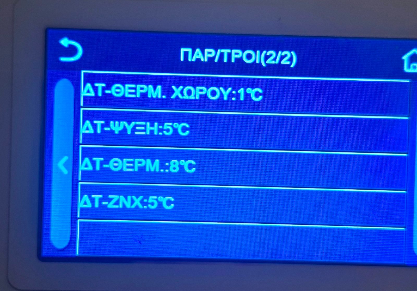 pavloa Δημοσ. 29 Σεπτεμβρίου Δημοσ. 29 Σεπτεμβρίου 7 λεπτά πριν, makisssss είπε Δεν γνωρίζω αν θα μπορούσες να κάνεις δουλειά με άλλο χειριστήριο. Θα σου πρότεινα για αρχή να χαμηλώσεις σημαντικά την θερμοκρασία των νερών και να παίξεις με τα δτ, παρακολουθώντας την κατανάλωση, έχοντας κλειστά τα ζνχ. Έχω βάλει αυτό. Ανω θα 20 από 25 που ήταν και κατω θα -5 από -25 που ήταν . Ανω θν 55 και κατω θν 32 από 40 που ήταν.. Το δτ τι είναι που αναφέρεις?