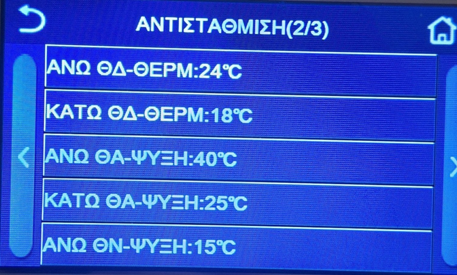 pavloa Δημοσ. 29 Σεπτεμβρίου Δημοσ. 29 Σεπτεμβρίου 8 ώρες πριν, Vidrinio είπε Λογικά θα έχεις αντλία gree γιατί και εμένα έτσι είναι το panel Αν θες να έχεις οικονομία πρέπει να την δουλεψεις με αντιστάθμιση γιατί και εμένα με την είχαν ρυθμίσει στους 55 βαθμούς και λειτουργουσες σαν λέβητας πετρελαίου και στα κρύα με έκαιγε γύρω στις 30 κιλοβατώρες την ώρα και την έριξα στα μισά την κατανάλωση Toyotomi έχουμε περάσει. Είδη εχω αλλάξει τις ρυθμίσεις, τώρα που καταλαβα πως δουλεύει η αντιστάθμιση θα δω πως θα δουλεύει.. Ξέρεις μήπως τι είναι το ανω θδ-θερμ και κατω θδ-θερμ? 12 ώρες πριν, mechpanos είπε Μην κάνεις κανένα αστείο, και το αφήσεις έτσι! Ξεκίνα αντιστάθμιση, βάλε κάποιες ενδεικτικές θερμοκρασίες άνω θα 20 κάτω 0, άνω θν 55 κάτω 30, το θδ δεν ξέρω τί παίζει άστο έτσι... Τί καραγκιοζοπαίχτες είναι οι εγκαταστάτες ρε φίλε βάζουν σύγχρονες αντλίες με αντιλήψεις λεβήτων πετρελαίου... Είδη τα έχω αλλάξει και έβαλα. Ανω θα 20 κατω θα -5 . Ανω θν 55 και κατω θν 32. Το θδ μήπως ειναι θερμοκρασία δωματίου? Υποτίθεται έρχονται και ρυθμίζουν την αντλια σύμφωνα με την περιοχή και ανάλογα την μόνωση του σπιτιού και τα σώματα..