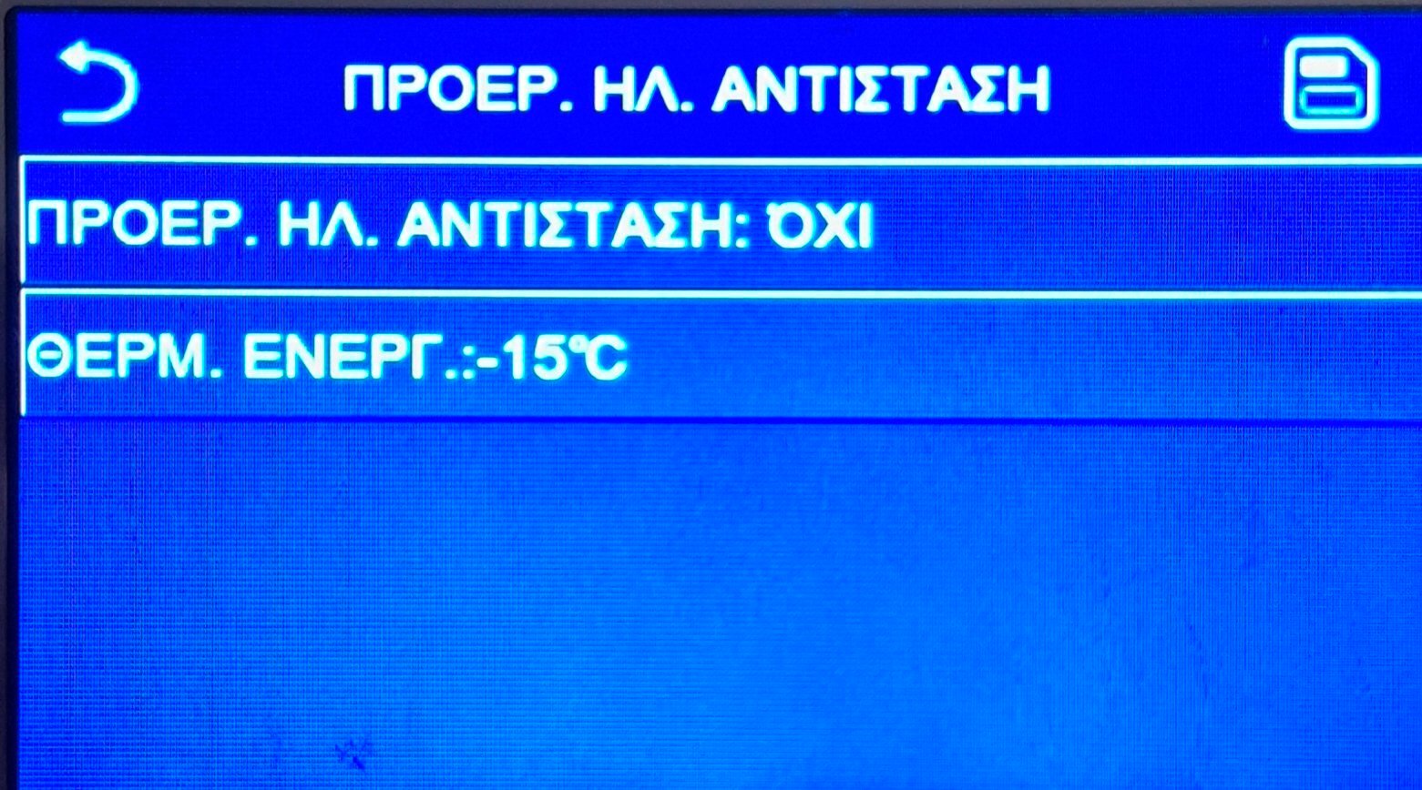 makisssss Δημοσ. Δευτέρα στις 10:30 μμ Δημοσ. Δευτέρα στις 10:30 μμ (επεξεργασμένο) 3 ώρες πριν, pavloa είπε Αυτές οι ρυθμίσεις είναι του τεχνικού και είναι κλειδωμένα.. Έχω τον κωδικό και μπήκα.. Χρειάζεται να κάνω τίποτα εδώ? Είπες για πρόγραμμα αντιπαγωτικό μήπως εδώ το βλέπω? Στην δεύτερη εικόνα που λέει Προερ. Ηλ αντίσταση αν το πατήσω βγάζει το μενού στην τελευταία εικόνα που εχω με ** Αυτή είναι η κατάσταση της αντλίας τώρα που δεν δουλεύει και βγάζει το 1.5Α ** Σε αυτές τις αντλίες δουλεύει συνεχώς ο κυκλοφορητής, εμένα θέλει 2kw στις 24 ώρες όταν είναι standby και δεν έχει δυνατότητα απενεργοποίησης από το menu. Δεκάρα είναι η αντλία σου? Επεξ/σία Δευτέρα στις 10:35 μμ από makisssss