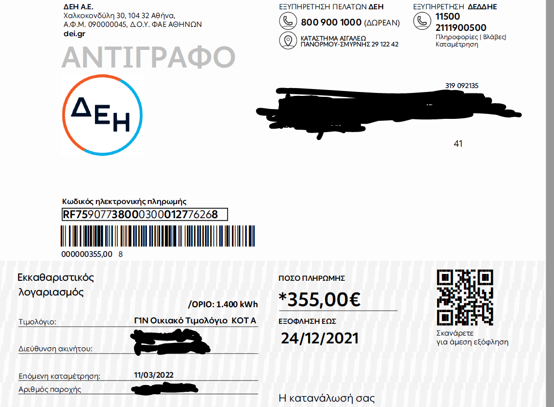 στη συνέχεια από ΔΕΔΔΗΕ Μεσόγειων μου είπαν ότι πρέπει να την παραλάβουν εντός ενός μήνα πρωτότυπη ή να υποβληθεί εκεί.