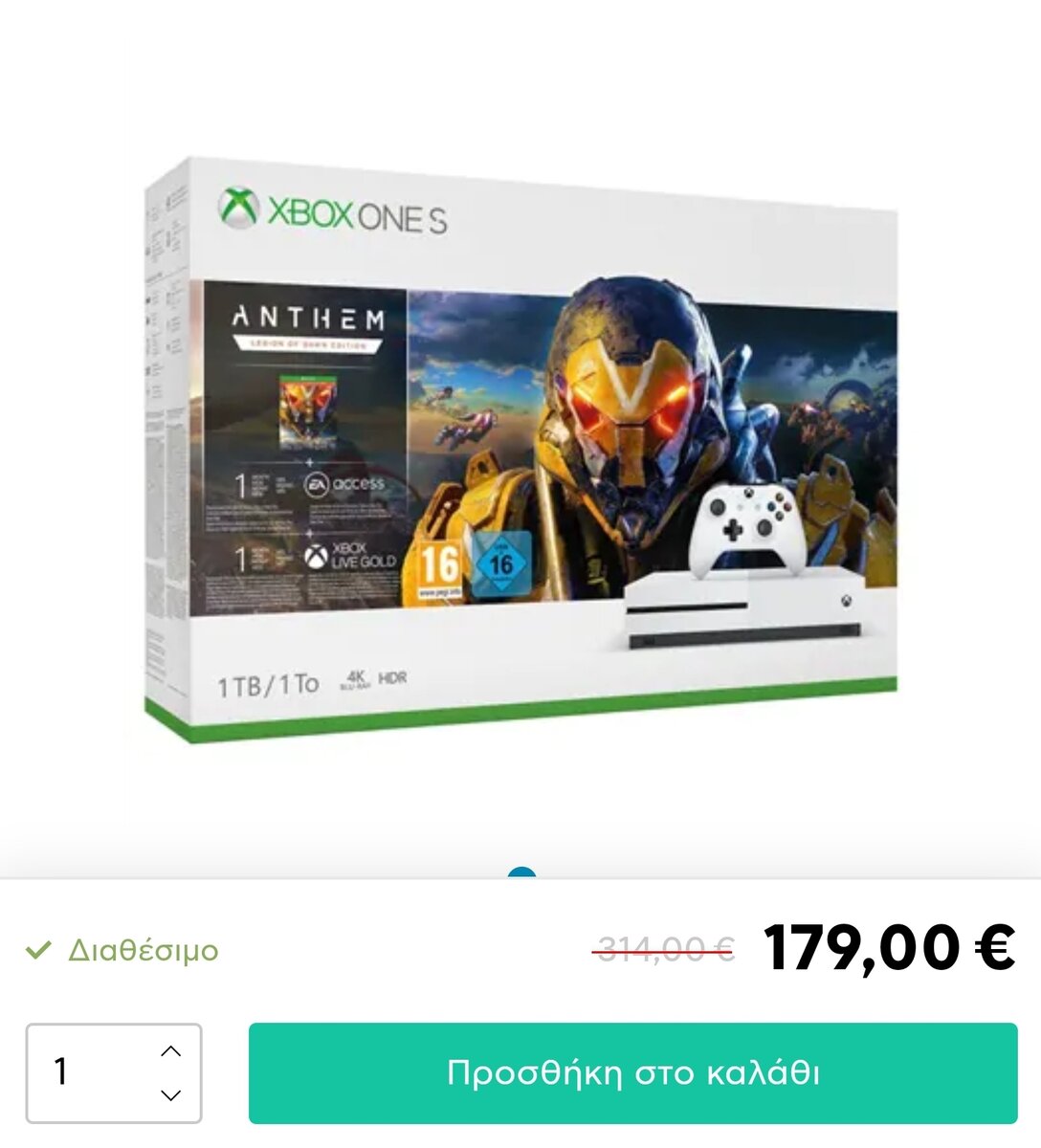 Οράτιος Δημοσ. 25 Ιουλίου 2020 Δημοσ. 25 Ιουλίου 2020 (επεξεργασμένο) https://www.plaisio.gr/gaming-zone/konsoles/microsoft-xbox-one-s-1-tb-anthem_3113337 220.5+ https://www.skroutz.gr/s/17418044/Microsoft-Xbox-One-S-1TB-Anthem.html Happy hours https://www.plaisio.gr/promo-20200722-web-only?ticket=00155D126B041EDAB3823FD299F020DF Επεξ/σία 25 Ιουλίου 2020 από Οράτιος 1 1