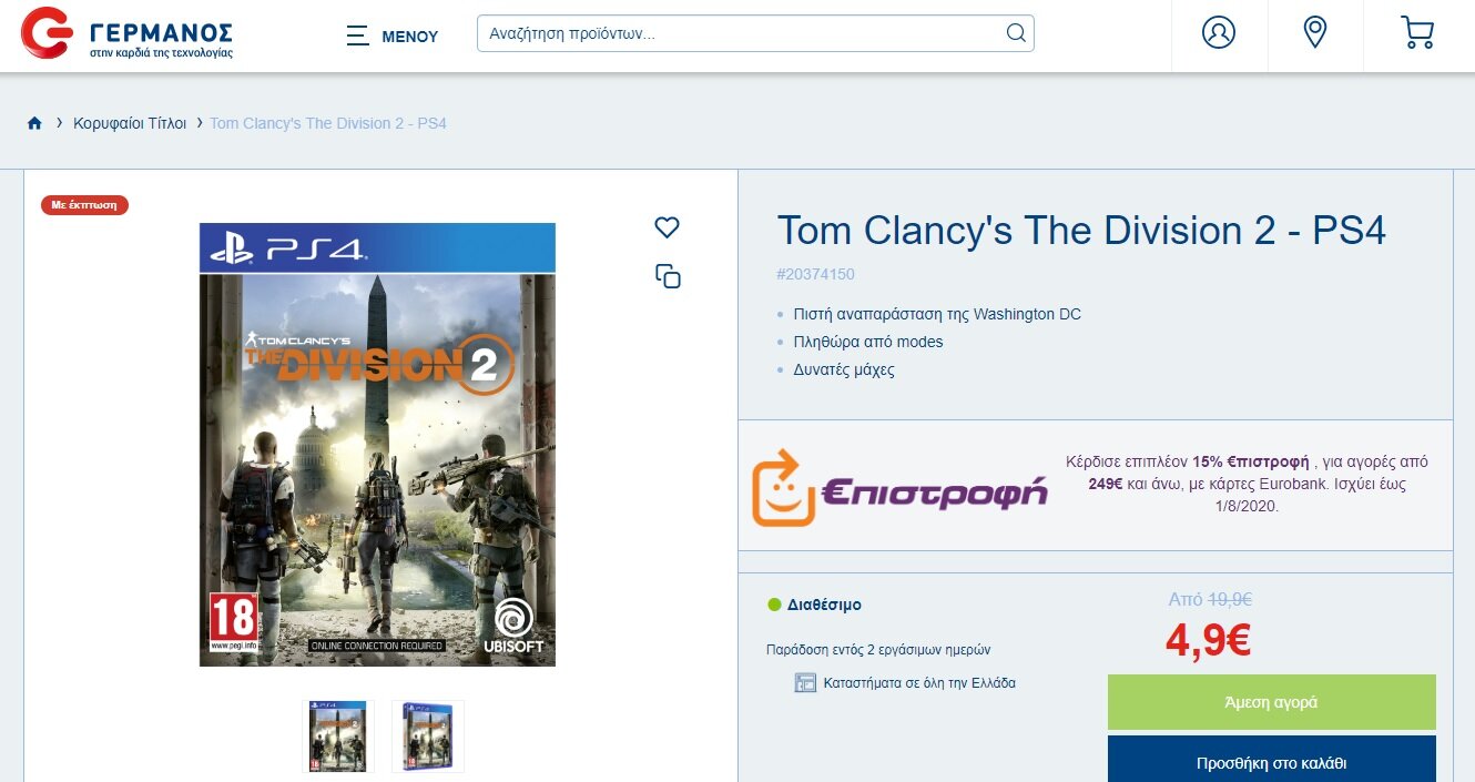 IcemanGr71 Δημοσ. 31 Ιουλίου 2020 Δημοσ. 31 Ιουλίου 2020 (επεξεργασμένο) https://www.germanos.gr/product/tom-clancys-the-division-2-ps4/20374150/ Στο Skroutz από 11€... https://www.skroutz.gr/s/16964490/Tom-Clancy-s-The-Division-2-PS4.html Επεξ/σία 31 Ιουλίου 2020 από IcemanGr71 5