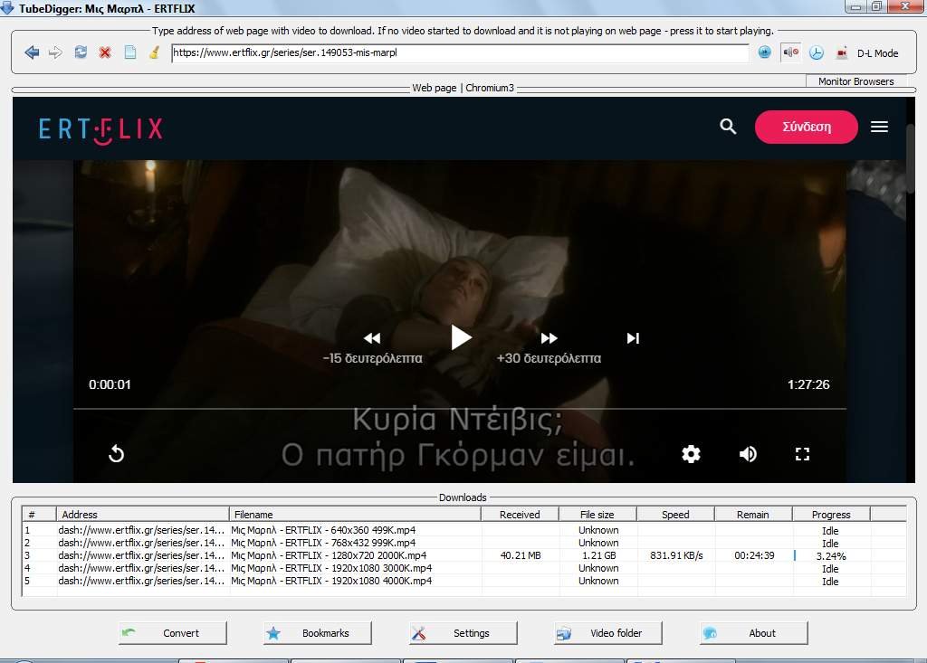 rackal Δημοσ. 28 Οκτωβρίου 2021 Δημοσ. 28 Οκτωβρίου 2021 Στις 19/10/2021 στις 7:14 ΜΜ, as!!trip είπε Για να συνεισφέρω στα προηγούμενα, βρήκα αυτό το ανοικτού κώδικα πρόγραμμα https://mrs0m30n3.github.io/youtube-dl-gui/ Ακολουθώντας τη μεθοδολογία που περιέγραψε ο @rackal μπορείτε να επικολλήσετε το αντίστοιχο αρχείο index.mpd στο παράθυρο του προγράμματος και να κατεβάσετε το βίντεο σε όποια τοποθεσία ορίσετε. Αυτό που θα ήθελα να ρωτήσω οποιοδήποτε μέλος μπορεί να γνωρίζει, αν είναι δυνατόν να κατεβάσουμε το αρχείο βίντεο σε χαμηλότερη ανάλυση από την προκαθορισμένη. π.χ. ο δεσμός https://mediaserve.ert.gr/bpk-vod/vod/default/zaketa-na-pareis-s01-ep02/zaketa-na-pareis-s01-ep02/index.mpd κατεβάζει αρχείο βίντεο σε ανάλυση 1080. Υπάρχει τρόπος για να εξοικονομηθεί και χώρος να κατέβει σε 720 ή και χαμηλότερη; Σου έχει επιλογή στο yt4down σε τι ανάλυση θες να το κατεβάσεις. 1080p, 720p και πάει λέγοντας, αν μιλάς για το dl gui , πάνω δεξιά στο γρανάζι πας options - formats και επιλέγεις όποιο 720p σου αρέσει. Απλά το dl gui θέλει διαδικασία στην εγκατάσταση και δε ξέρω αν βοηθάει τους φίλους που δεν γνωρίζουν απο command Στις 20/10/2021 στις 1:09 ΜΜ, chatzi21 είπε Καλησπερα με το youtube4kdownloader πραγματι κατεβαινουν τα περισσοτερα λινκ ωστοσο στα παρακατω: https://mediaserve.ert.gr/bpk-vod/vodext/default/gus-g-life-through-fire/gus-g-life-through-fire/index.mpd https://mediaserve.ert.gr/bpk-vod/vodext/default/20211008-dynata-ep2/20211008-dynata-ep2/index.mpd https://mediaserve.ert.gr/bpk-vod/vodext/default/20211015-dynata-ep3/20211015-dynata-ep3/index.mpd ενω εμφανιζει κανονικα download λινκς σε 1080, 720, κτλ κλικαροντας δεν κατεβαζει και βγαζει μετα απο λιγο σφαλμα: 'An error occurred from remote video site. Please try with other download link' τα βιντεο παιζουν κανονικα στο ertflix μπορει καποιος να βοηθησει? Μια χαρά τα βλέπω να κατεβαίνουν
