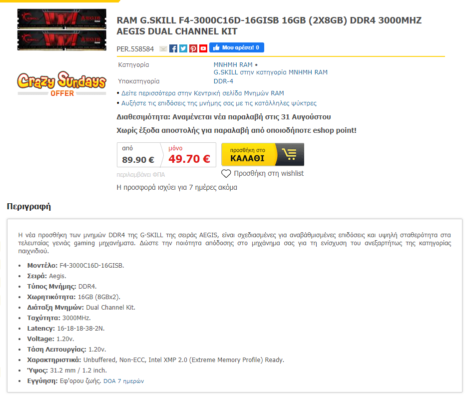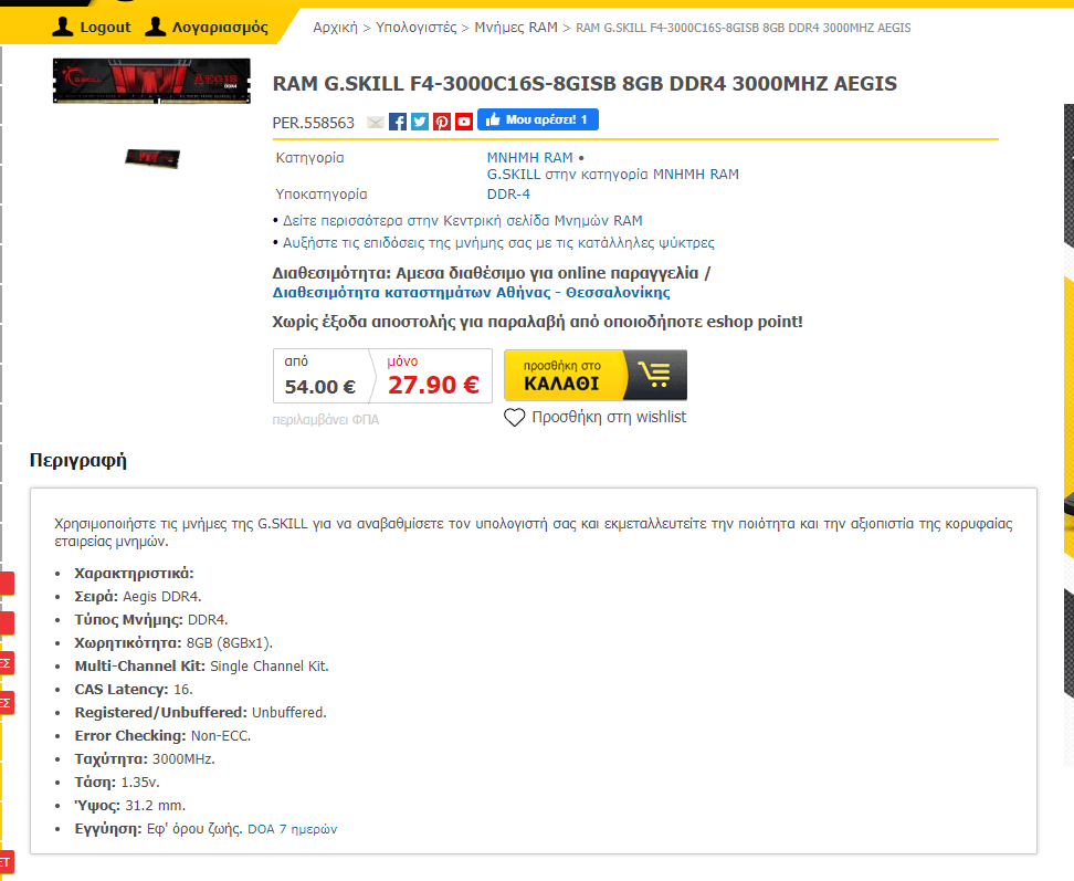 TopCLR Δημοσ. 31 Αυγούστου 2020 Δημοσ. 31 Αυγούστου 2020 Οι περιγραφές των καταστημάτων μερικές φορές είναι "ότι να 'ναι"! G.SKILL F4-3000C16S-8GISB G.SKILL F4-3000C16D-16GISB Το voltage (και οι χρονισμοί) είναι ίδιο αλλά (όπως αναφέρθηκε) δεν είναι εντελώς σίγουρη η συμβατότητα. 1