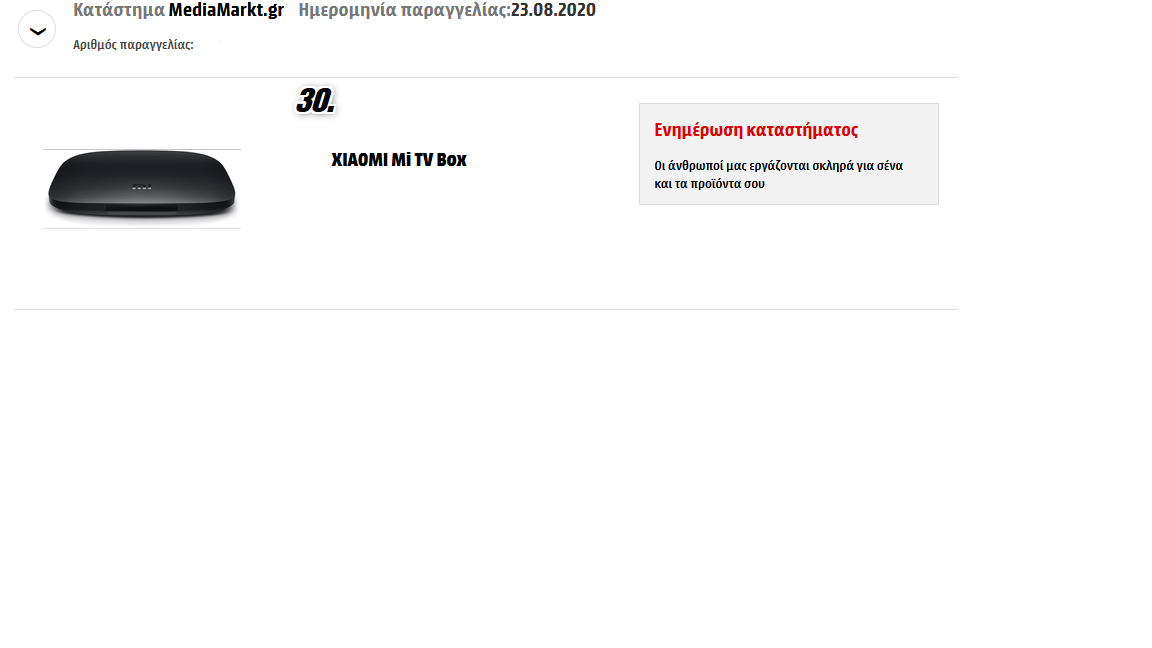 kmarios Δημοσ. 16 Σεπτεμβρίου 2020 Δημοσ. 16 Σεπτεμβρίου 2020 Επαναφέρω το θέμα, μιας και το αρχικό πόστ της προσφοράς έχει σβηστεί. Υπάρχει κάποιος που παρέλαβε από MediaMarkt το XIAOMI Mi TV Box στην τιμή των 30e ? Έιχε μπει σε προσφορά απο MediaMarkt το XIAOMI Mi TV Box στις 22 - 23 Αυγούστου στην τιμή των 30e. Η αγορά μου, από 23.08.2020, έχει ακόμα το μήνυμα ¨Οι άνθρωποί μας εργάζονται σκληρά για σένα και τα προϊόντα σου " 2