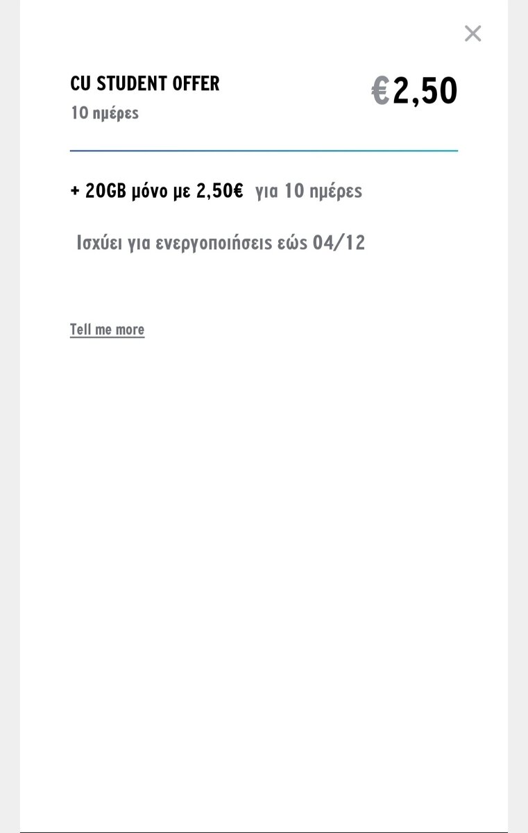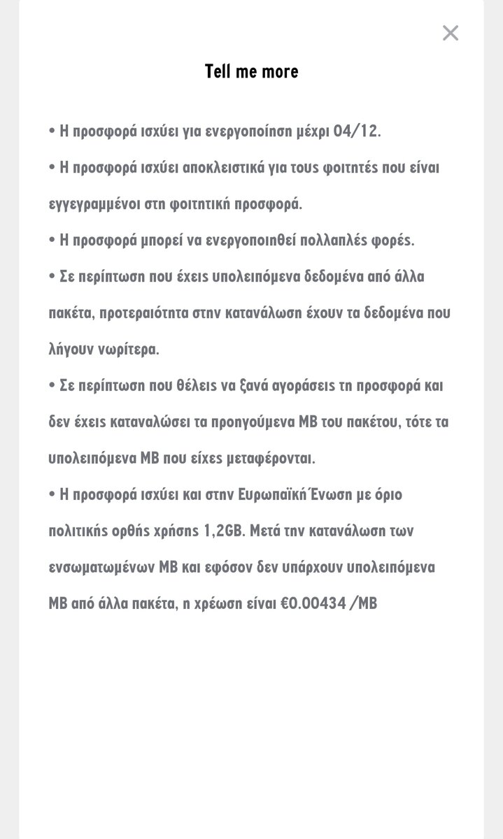 Επισκέπτης Δημοσ. 28 Σεπτεμβρίου 2020 Δημοσ. 28 Σεπτεμβρίου 2020 Μόλις τώρα, dijkstraJ είπε Να ρωτήσω ... Το πακετάκι με τα 40GB 10€ αν καταλαβάινω καλά είναι για 30 μέρες και δεν είναι φοιτητικό ? Σωστά. Και αν βάλεις το ίδιο πακέτο πριν λήξει το προηγούμενο, προστίθενται.