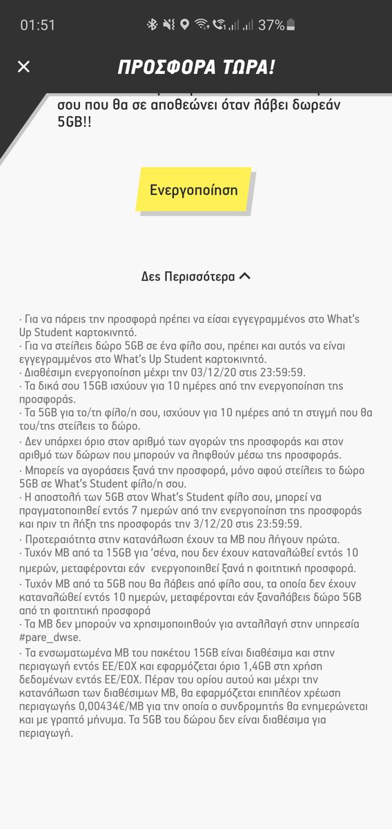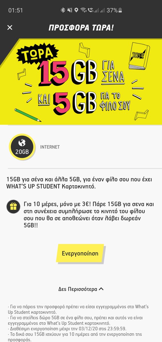 Greg9 Δημοσ. 9 Οκτωβρίου 2020 Δημοσ. 9 Οκτωβρίου 2020 Πάει να χτυπήσει τη προσφορά του cu. Με 0,5€ παραπάνω βασικά σου δίνει 5+5 gb extra σε σχεση με το cu