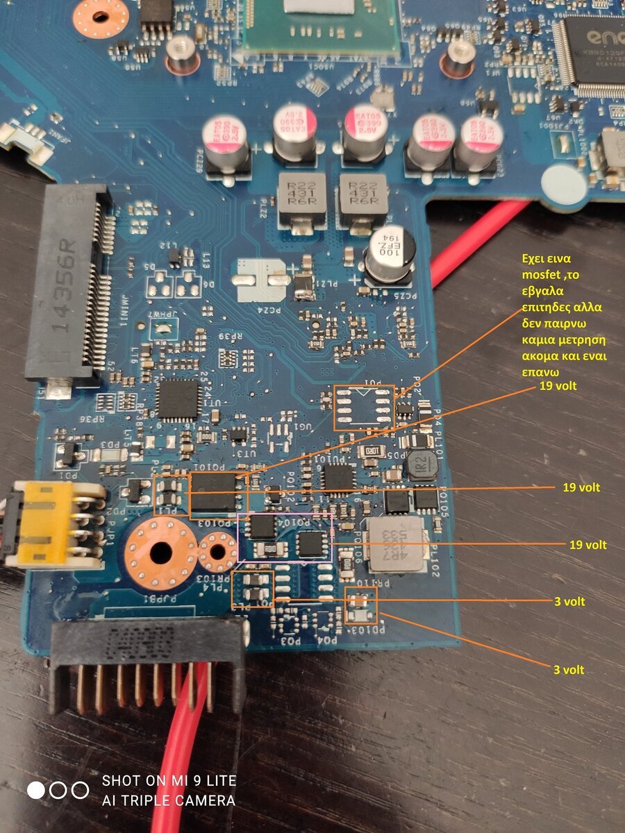 giannis22k Δημοσ. 2 Νοεμβρίου 2020 Δημοσ. 2 Νοεμβρίου 2020 Φιλη μου εφερε το λαπτοπ και αφου το εκλεισε κανονκα μετα δεν ξανα αναψε .Παιρνω καποιες μετρησεις αλλα με μπερδευει (δεν γνωριζω και πολλα).Αφου εξετασα και το τροφοδοτικο οτι φερνει ρευμα μεχρι τα pins στη μητρικη.(ξανα δοκιμασα να ξανα φλασαρω το bios μεσω του clip και και για μια στιγμη αναψε το led εκει που μπεινει το βυσμα του τροφοδοτικου και ξανα εσβησε.Το ξαναβαζω το βυσμα αλλ τιποτα.Το αφησα ωρες χωρις να κανω τιποτα στη μητρικη και παλι αναψε για λιγο το led) Το schematic ειναι αυτο αλλα v.1 δεν βρισκω v.2 http://www.s-manuals.com/pdf/motherb...schematics.pdf Αρχιζω και μετραω αν φερνει ταση ποιο μεσα.Δοκιμασα να βγαλω και καποιους πυκνωτες αλλα τιποτα. lm393 mosfet https://www.ti.com/store/ti/en/p/product/?p=LM393DR