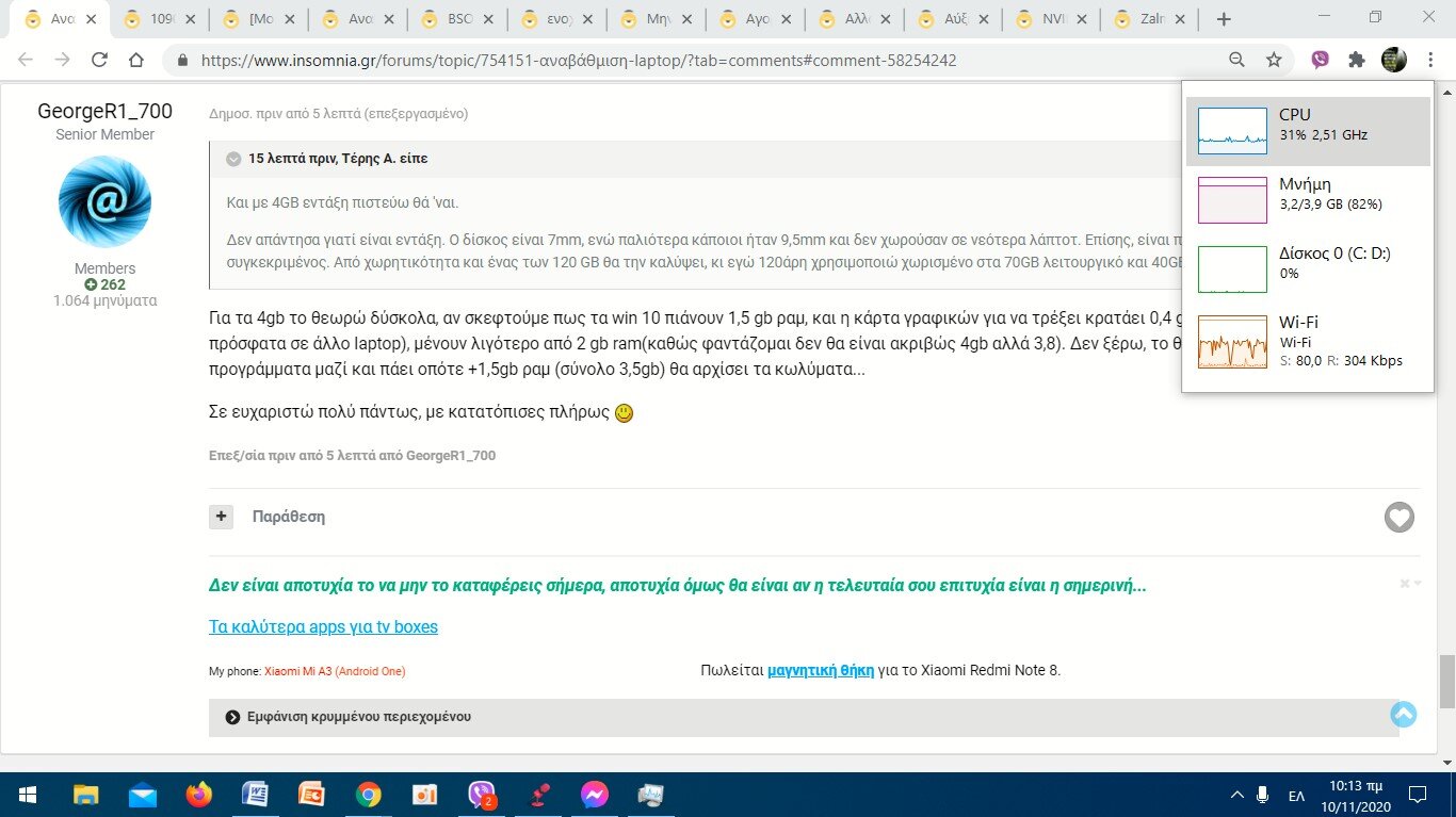 Με ανοιχτό Zoom, Viber, Messenger, 12 καρτέλες Chrome και ένα έγγραφο office, αλλά αν έχει την άνεση να πάει σε 8GB. Οι απαιτήσεις των εφαρμογών ολοένα και αυξάνονται.