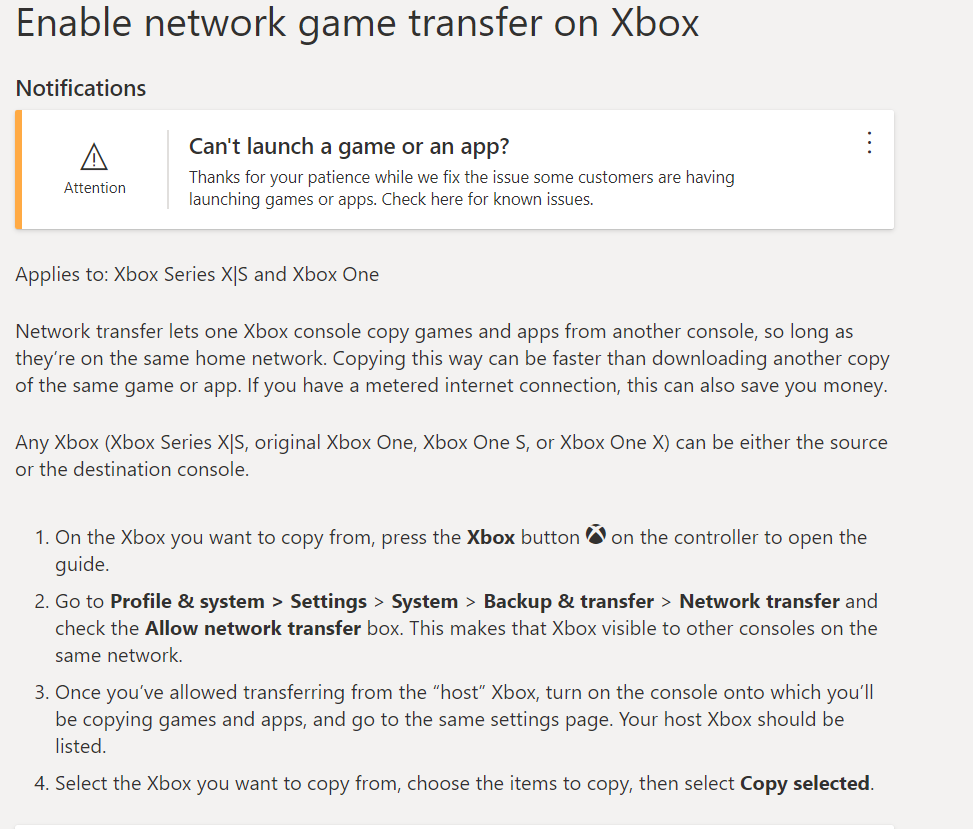Applies to: Xbox Series X|S and Xbox One..........Any Xbox (Xbox Series X|S, original Xbox One, Xbox One S, or Xbox One X) can be either the source or the destination console.....