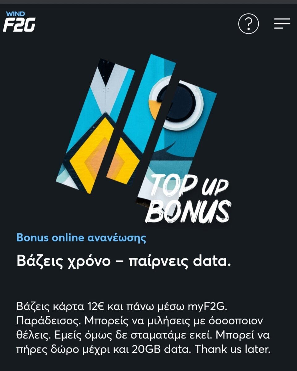 focusopoulos2 Δημοσ. 16 Νοεμβρίου 2020 Δημοσ. 16 Νοεμβρίου 2020 https://www.wind.gr/gr/f2g/pronomia/ Με κάθε ανανέωση δίνει δωρεάν έως και 20 GB για 15 ημέρες. Εμένα με 12 ευρώ ανανέωση χρόνου ομιλίας μου έδωσε 10 GB. Το θέμα δεν έχει σκοπό την διαφήμιση απλά την ενημέρωση.