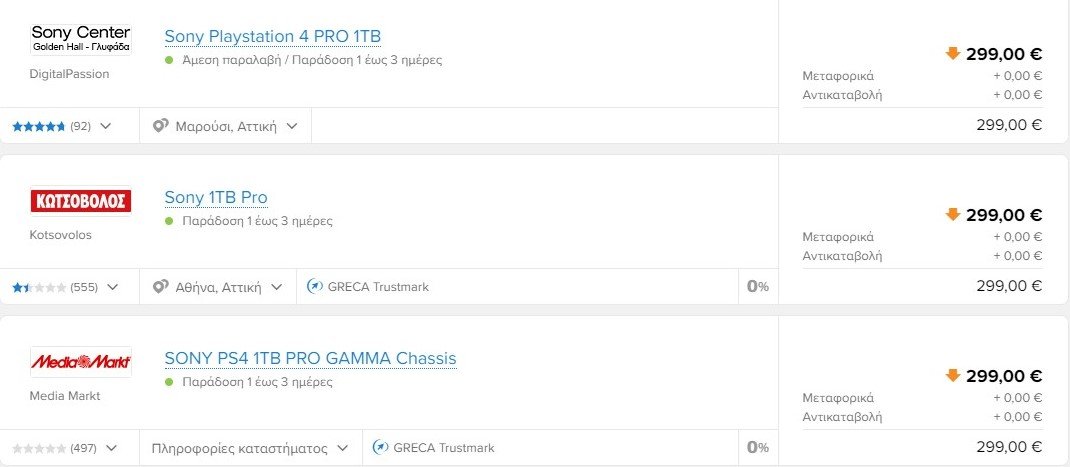 Κάτι ύποπτο μου μυρίζει τις τελευταίες μέρες. Υπάρχει προωθητική ενέργεια για πσ4 με περίπου -100€. Μήπως αδειάζουν το στοκ λέω εγώ?μήπως αν ήταν το πσ5 διαθέσιμο θα τους έμενε στο ράφι το 4αρι?μήπως τα καταστήματα έχουν δώσει αναφορές για μεγάλο στοκ που πρέπει να φύγει?