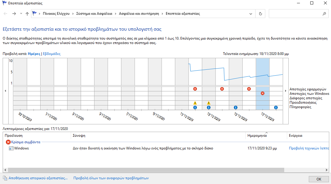neo80 Δημοσ. 18 Νοεμβρίου 2020 Δημοσ. 18 Νοεμβρίου 2020 για δώσε ένα screenshot απο προβολή ιστορικού αξιοπιστίας κάνε κλικ στην ποιο πρόσφατη ημερομηνία με X ή ψάξε κάθε μια και δες αν σχετίζεται με το πρόβλημα σου. Αλλιώς θα είναι το UEFI/BIOS ποια έκδοση έχεις; Μιλάμε για αυτή την μητρική σωστά;
