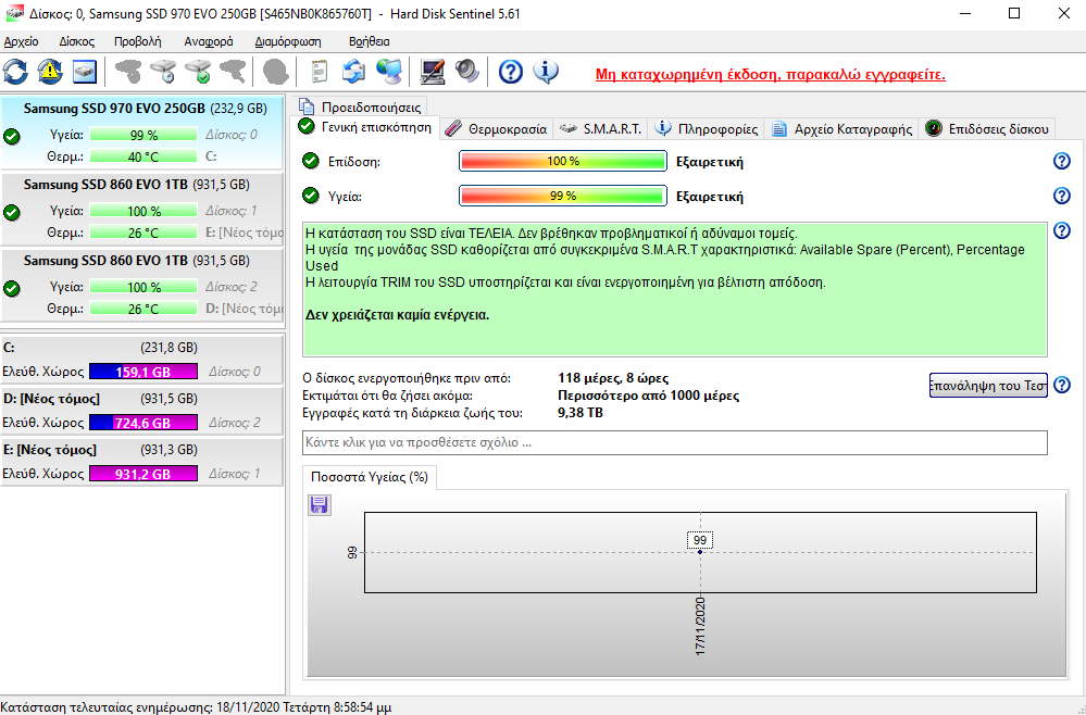 neo80 Δημοσ. 18 Νοεμβρίου 2020 Δημοσ. 18 Νοεμβρίου 2020 2 ώρες πριν, antonis_1995 είπε ΠΡΟΒΛΗΜΑ '' Δεν ειναι δυνατη η εκκινηση των windows λογω ενος προβληματος με τον σκληρο δισκο'' Ίσως να είναι ο σκληρός σου δίσκος για κατέβασε μια το hdsentinel και δώσε screenshot απο τις καρτέλες Γενική επισκόπιση, SMART και αρχείο καταγραφής. επίσης τρέξε την προβολή συμβάντων και πήγαινε στα προσαρμοσμένες προβολές-->συμβάντα διαχείρισης εκεί κάνε δεξί κλικ πάνω στα συμβάντα διαχείρισης και μετά κάνε κλικ στο αποθήκευση όλων των συμβάντων σε προσαρμοσμένη προβολή ως.. δώσε ένα όνομα στο αρχείο με κατάληξη .evtx πχ. συμβάντα.evtx και ανέβασε το εδώ για να το δούμε και να βγάλουμε άκρη. Συνήθως όταν κάτι πάει στραβά και δεν εκκινεί ο υπολογιστής ένα συμβάν καταγράφεται στο κρίσιμο.