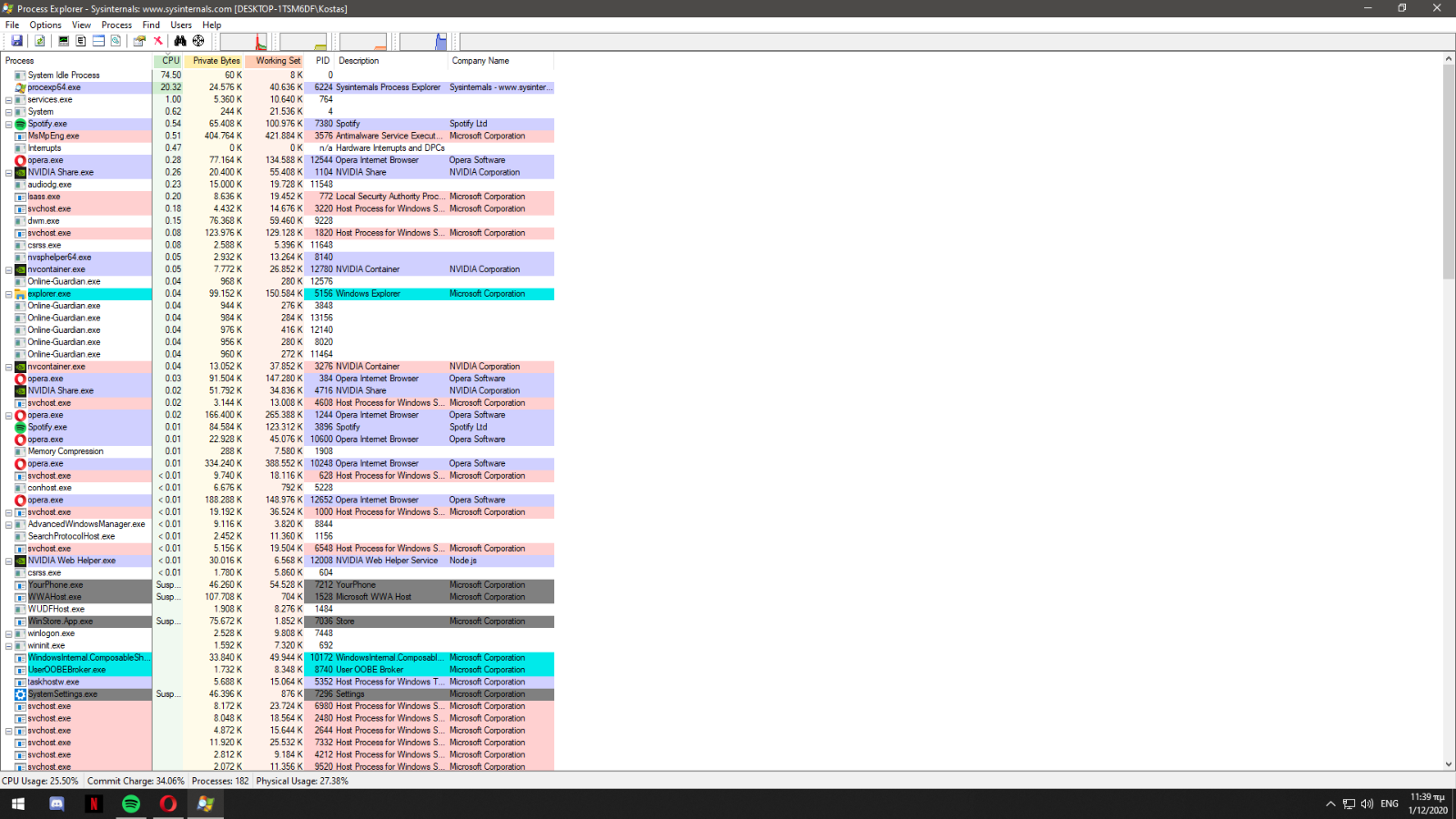 kostaslaf Δημοσ. 1 Δεκεμβρίου 2020 Μέλος Δημοσ. 1 Δεκεμβρίου 2020 11 ώρες πριν, micos000 είπε Τρέξε το παρακάτω, επέλεξε την στήλη cpu για στοίχιση και ανέβασε ένα screenshot (ALT+PntScr για το ενεργό παράθυρο) να δούμε τι είναι. https://live.sysinternals.com/procexp.exe λογικα σωστα πρεπει να το εβγαλα πατησα απλα μια φορα το CPU και το εκανα screenshot
