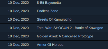 jimbo86 Δημοσ. 10 Δεκεμβρίου 2020 Δημοσ. 10 Δεκεμβρίου 2020 Εμένα μου έδωσε αυτά: 8-Bit Bayonetta Golden Axed: A Cancelled Prototype Streets Of Kamurocho Endless Zone Armor Of Heroes. Thx OP...