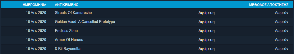EmpYristis Δημοσ. 10 Δεκεμβρίου 2020 Δημοσ. 10 Δεκεμβρίου 2020 Ευχαριστώ. Δούλεψε σε Chrome μόνο. 10 Δεκ 2020 Αφαίρεση Armor Of Heroes Δωρεάν 10 Δεκ 2020 Αφαίρεση Total War: SHOGUN 2 - Battle of Kawagoe Δωρεάν 10 Δεκ 2020 Αφαίρεση Golden Axed: A Cancelled Prototype Δωρεάν 10 Δεκ 2020 Αφαίρεση Streets Of Kamurocho Δωρεάν 10 Δεκ 2020 Αφαίρεση Endless Zone Δωρεάν 10 Δεκ 2020 Αφαίρεση 8-Bit Bayonetta