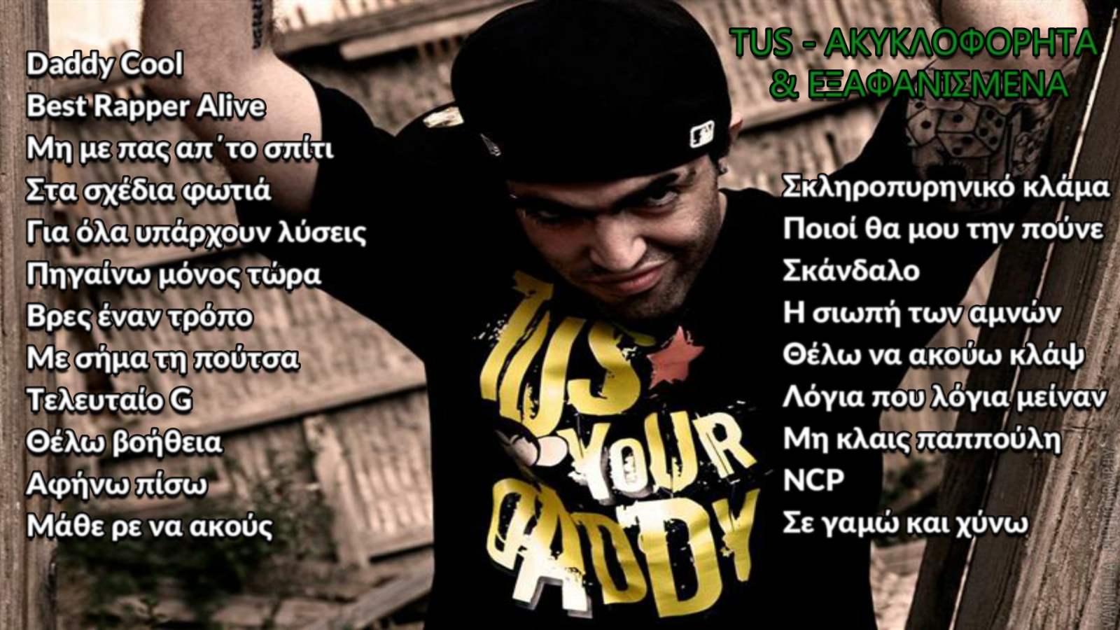teoman96 Δημοσ. 10 Δεκεμβρίου 2020 Δημοσ. 10 Δεκεμβρίου 2020 ΚΑΤΕΒΑΣΤΕ ΤΟ ΑΠΟ ΤΟ MEDIA FIRE: http://www.mediafire.com/folder/j2mheojj9hhc0/TUS_-_ΑΚΥΚΛΟΦΟΡΗΤΑ Ο δίσκος "Ακυκλοφόρητα και Εξαφανισμένα" περιέχει 21 + 3 κομμάτια, που είτε κυκλοφόρησαν κάποια στιγμή αλλά κατέβηκαν σχεδόν αμέσως, είτε με την πάροδο του χρόνου εξαφανίστηκαν είτε κυκλοφόρησαν ξανά, με άλλη μουσική (βλ. Best Rapper Alive, Έτσι μεγάλωσα...) Τα τραγούδια, είναι από διάφορες περιόδους που ο Tus, είναι ενεργός ως ράπερ από τα πρώτα του βήματα εώς τώρα! 1) Daddy Cool(Στίχοι/Ερμηνεία : TUS - Παραγωγή: FUS) 2) Best Rapper Alive (Στίχοι/Ερμηνεία : TUS - Παραγωγή: John Thanos) 3) Μη με πας απ΄το σπίτι (Στίχοι/Ερμηνεία: TUS/Άρχοντας - Παραγωγή: Άρχοντας) 4) Στα σχέδια φωτιά (Στίχοι/Ερμηνεία: TUS - Παραγωγή: Stoic) 5) Για όλα υπάρχουν λύσεις (Στίχοι/Ερμηνεία : TUS) 6) Πηγαίνω μόνος τώρα (Στίχοι/Ερμηνεία : TUS) 7) Βρες έναν τρόπο (Στίχοι/Ερμηνεία : TUS - Παραγωγή: VGO) 8) Με σήμα τη πούτσα (Στίχοι/Ερμηνεία : TUS - Παραγωγή: Υπογειοκτήτορας) 9) Τελευταίο G (Στίχοι/Ερμηνεία: TUS) 10) Θέλω Βοήθεια (Στίχοι/Ερμηνεία: TUS/Οπλιστής - Παραγωγή: Οπλιστής) 11) Αφήνω Πίσω (Στίχοι/Ερμηνεια: TUS/Oπλιστής - Παραγωγή: Οπλιστής) 12) Μάθε ρε να ακούς (Στίχοι/Ερμηνεία: TUS-Οπλιστής-Μέλλοντας Παραγωγή: Οπλιστής) 13) Σκληροπυρηνικό Κλάμα (Στίχοι/Ερμηνεία: TUS - Παραγωγή: Υπογειοκτήτορας) 14) Ποιοι θα μου την πούνε; (Στίχοι/Ερμηνεία/Παραγωγή: TUS) 15) Σκάνδαλο (Στίχοι/Ερμηνεία: TUS - Παραγωγή: Υπογειοκτήτορας) 16) H Σιωπή των Αμνών (Στίχοι/Ερμηνεία: ΤUS - Παραγωγή: Υπογειοκτήτορας) 17) Θέλω να ακούω Κλάψ (Στίχοι/Ερμηνεία: TUS & 20Bellow - Παραγωγή: Υπογειοκτήτορας) 18)Λόγια που λόγια μείναν (Στίχοι/Ερμηνεία: TUS) 19)Μη κλαις παππούλη (Στίχοι/Ερμηνεία: TUS) 20)NCP (Στίχοι/Ερμηνεία: TUS - Παραγωγή: Dj Rolb) 21) Σε Γαμώ και χύνω (Στίχοι/Ερμηνεία: TUS) Bonus Tracks: 22) Έτσι Μεγάλωσα 23) Miss Πόρνες 24) Πισώπλατες Μαχαιριές feat Διονυσία ΥΓ. Εάν κάποιος/κάποια έχει τα εξής κομμάτια: Πιπίνι, ο γιος του ταξιτζή, στα σκουπίδια με πετάς, κωλοδάχτυλο, hey dj άντε γαμήσου, έχω την πένα με εμένα, μπήκα στο hip hop με σκοπό... και άλλο ένα που δε θυμάμαι τίτλο αλλά οι στίχοι είναι..."Tus από παντού το ντου, από παντού τσαπού..." ας κάνει έναν κόπο να τα ανεβάσει! Ευχαριστώ εκ των προτέρων!
