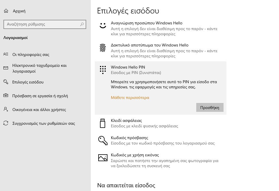 vounisios Δημοσ. 19 Δεκεμβρίου 2020 Μέλος Δημοσ. 19 Δεκεμβρίου 2020 Στις επιλογες Εισοδου, εμενα μου βγαζει αυτα που βαζω στη φωτο...Δεν βλεπω καποιο Remove,για διαγραφη του PIN....Επισης δεν θυμαμαι τωρα τι μου εκανε ο φιλος μου οταν περασε τα WIN & μου εκανε Format....Οποτε τωρα τι κανουμε ?