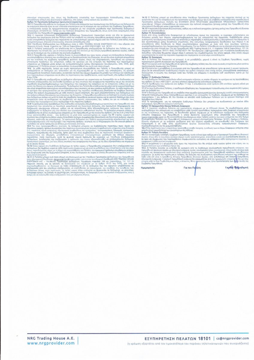 mithrid Δημοσ. 15 Μαρτίου 2022 Δημοσ. 15 Μαρτίου 2022 (επεξεργασμένο) Στις 14/3/2022 στις 12:57 ΠΜ, korakios είπε άλλο η ρήτρα που σου βάλανε με ονομασία χρέωση αναπροσαρμογής (=ρήτρα αναπροσαρμογής TTF), αυτή θα προσβάλλεις τη ρήτρα αναπροσαρμογή εννοεί αλλά αφού δε σου στείλανε και ποτέ το συμβόλαιο έχεις πάτημα στην ειδοποιηση τελικα βρηκα ιδιο συμβολαιο απο γειτονα μαζι με τους ορους(ειναι το ιδιο καθως το καναμε μαζι σχεδον χρονικα) οποτε οκτωβριο -νοεμβριο του 19, οπως ειχα υπολογισει,εγινε η συναψη του που σημαινει οτι εχει ληξει νοεμβριο- δεκεμβριο 21 (Αν απαντησει και η nrg ποτέ, ισως μαθω και ακριβη ημερομηνια ) Δεν βλεπω να αναφερει κατι για ρητρα.... το μονο που καταφερα να βρω υπερ μου ειναι το 6.2 καθως προχωρησε σε ανανεωση χωρις καμια ενημερωση,ουτε καν ειδοποιηση σε λογαριασμο. (δεν φαινονται καθαρα οι εικονες.πως μπορω να τις ανεβασω να τις δεις?) Επεξ/σία 15 Μαρτίου 2022 από gponiris