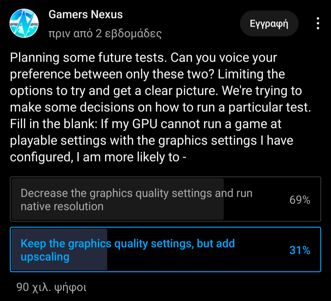 Tambas91 Δημοσ. 21 Δεκεμβρίου 2024 Δημοσ. 21 Δεκεμβρίου 2024 5 ώρες πριν, kkatzos είπε @Tambas91 LOL Αδιάφορο τι προτιμάει η μάζα... άκου μετά το 15:50 τι λέει και πως δουλεύει το TAA εκτεταμένες και εμπεριστατωμένες δοκιμες από HU αυτούς που όλοι λένε AMDboxed ’Aμα βγάλουν το TAA και επαναφέρουν το SMAA μπορεί να πάρω σοβαρά το native, μέχρι τότε να βάζω 4k TAA και να φαίνεται η εικόνα λες και έχω 1080p ευχαριστώ δε θα πάρω.. χίλιες φορες dlssq με τα οποια μικροθεματάκια έχει +20 fps 2