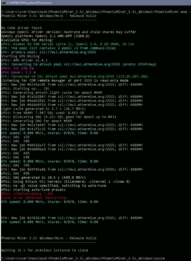 Εχω αυτά τα σφάλματα στο phoenix miner Καμια βοηθεια?